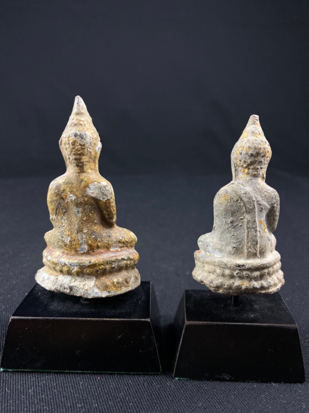 2 Thai lead with lacquer amulet Buddha's from 19th Century, Rattanakosin