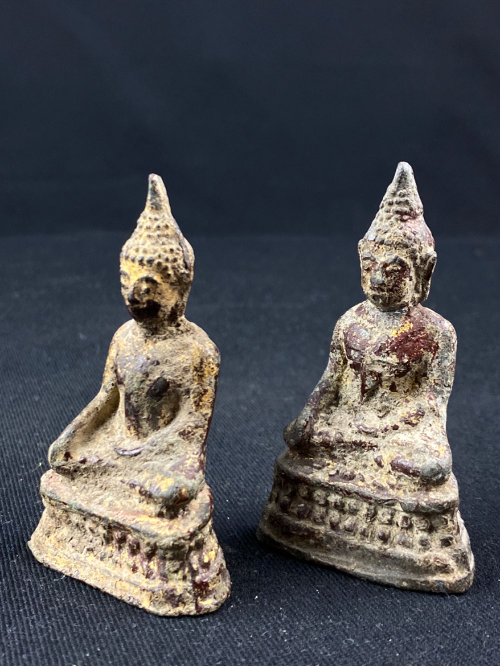 2 Thai lead with lacquer amulet Buddha's from 19th Century, Rattanakosin