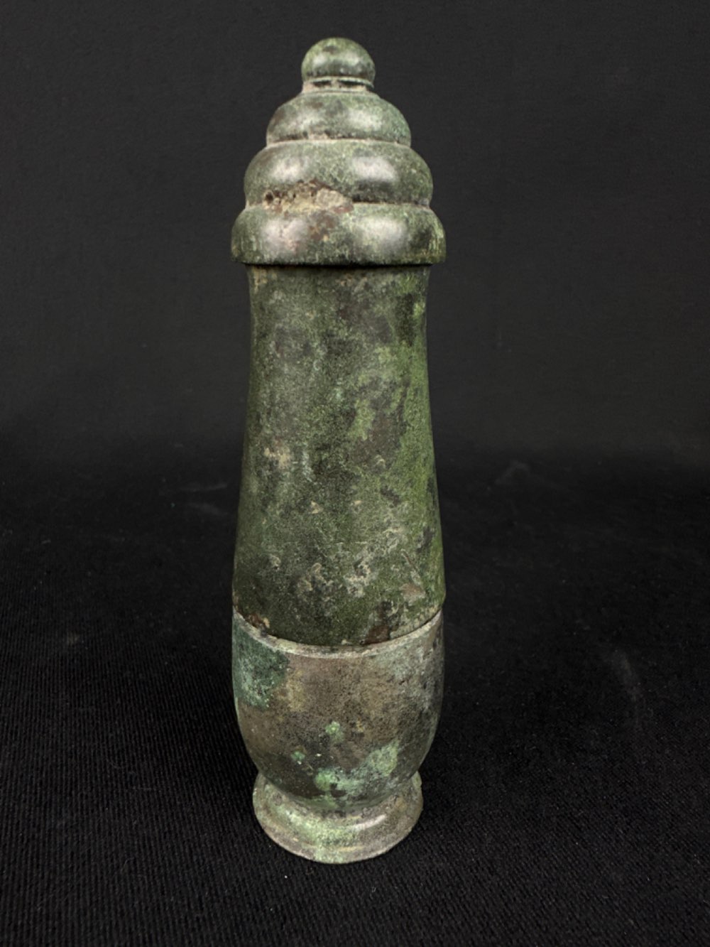 It served as a vessel for holding slaked lime which was added to betel nut and spices, then chewed, providing a mild intoxication. This was a popular habit throughout much of SE Asia. The lid and base fit perfectly together enriching the aesthetic quality of the lime pot.