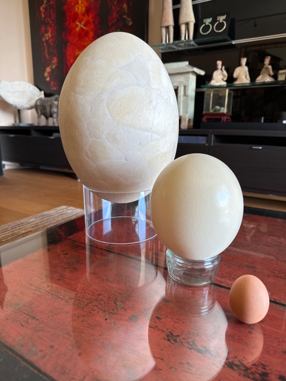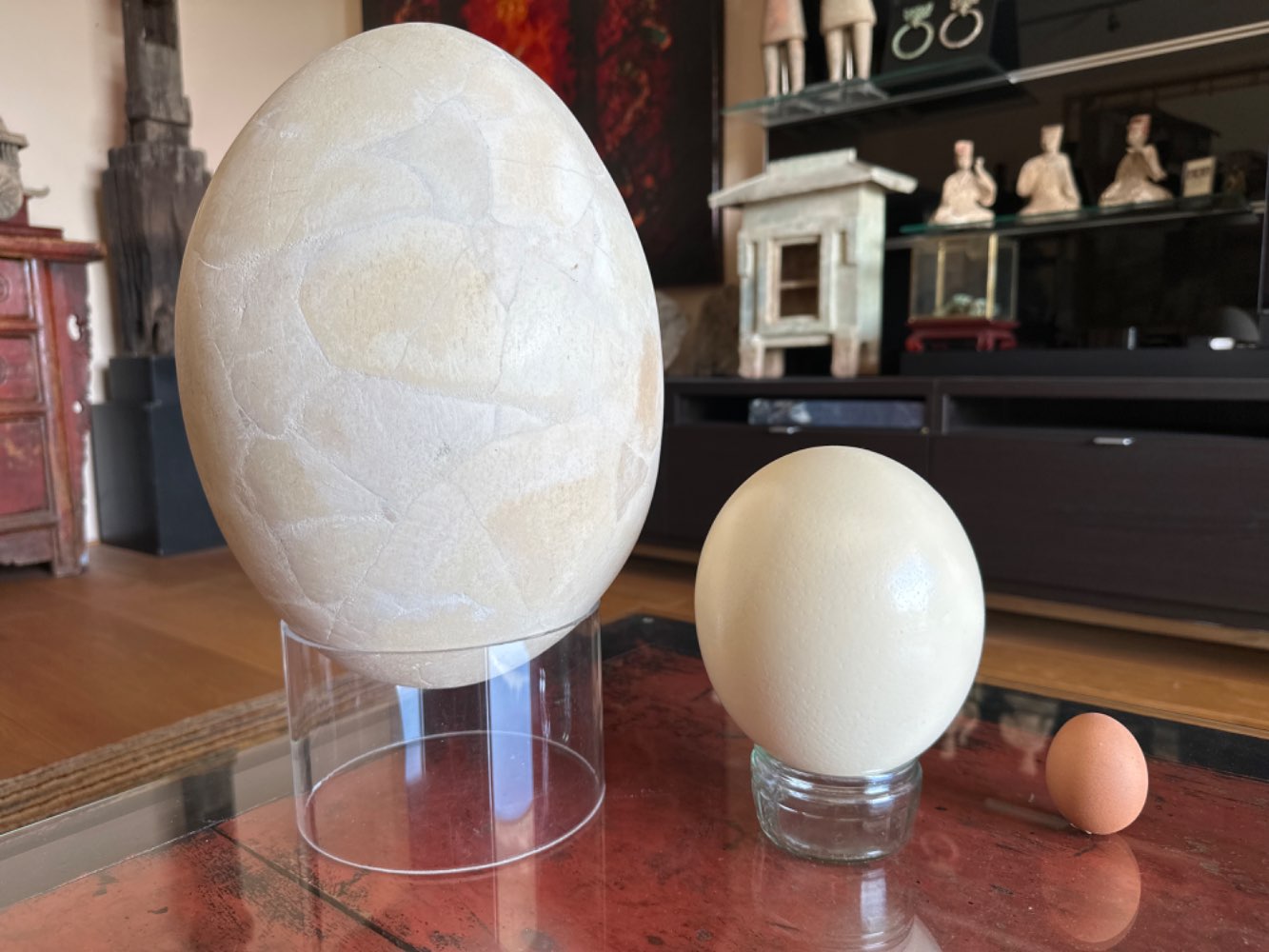 • This egg is large enough to contain 7 ostrich eggs, 1280 chicken eggs, or 12,000 hummingbird eggs.