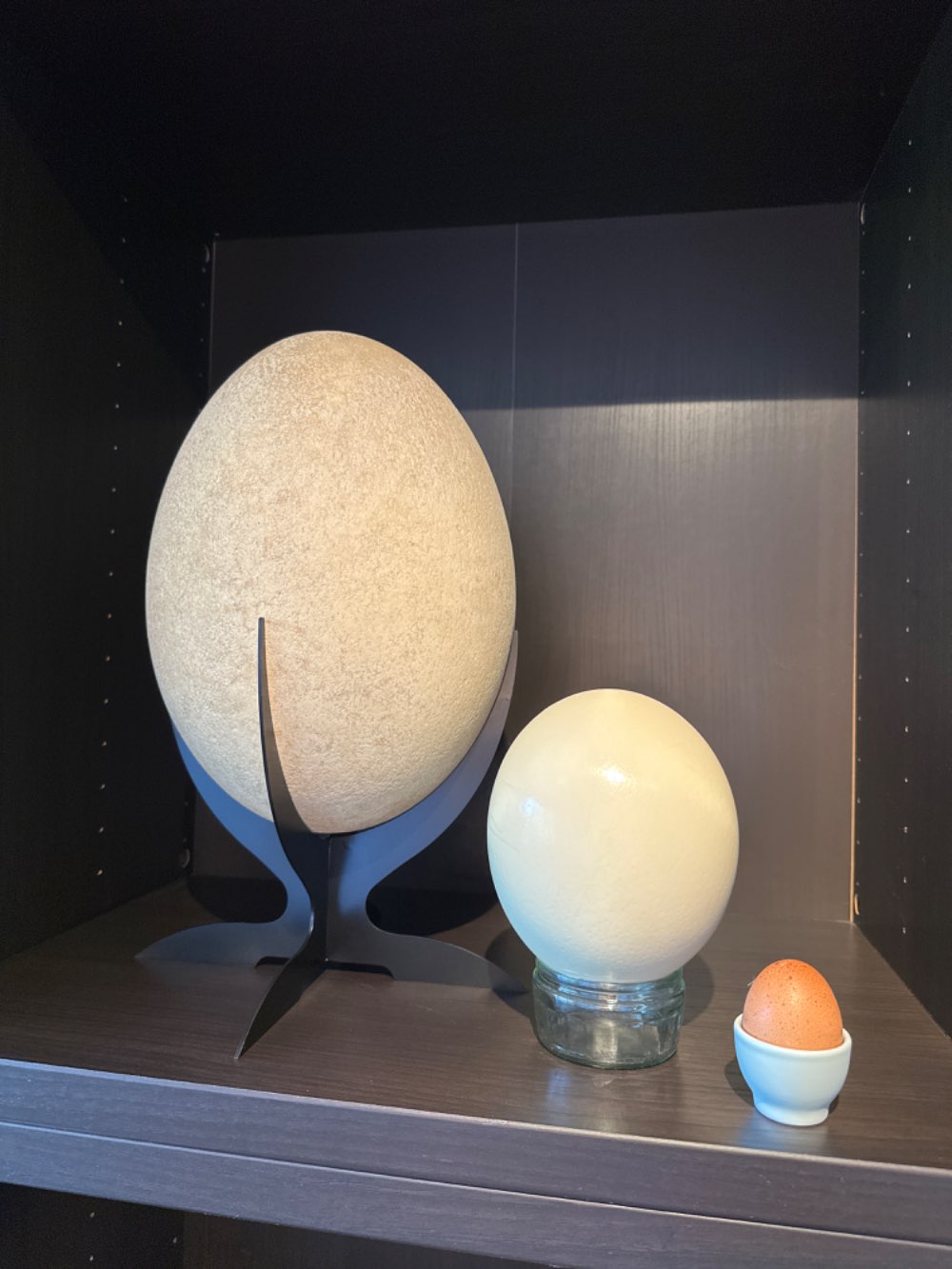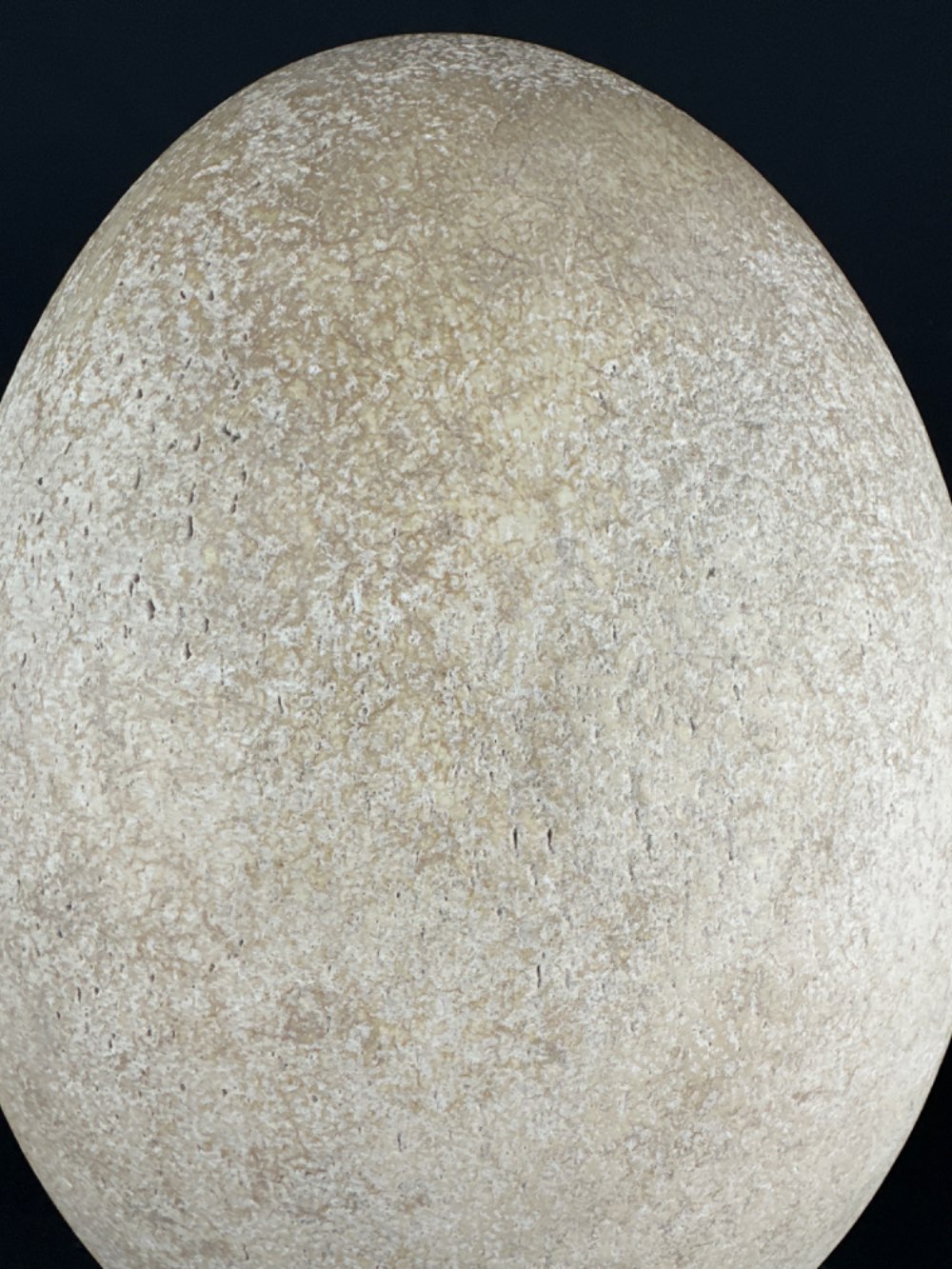 This egg is large enough to contain 7 ostrich eggs, 1280 chicken eggs, or 12,000 hummingbird eggs.
