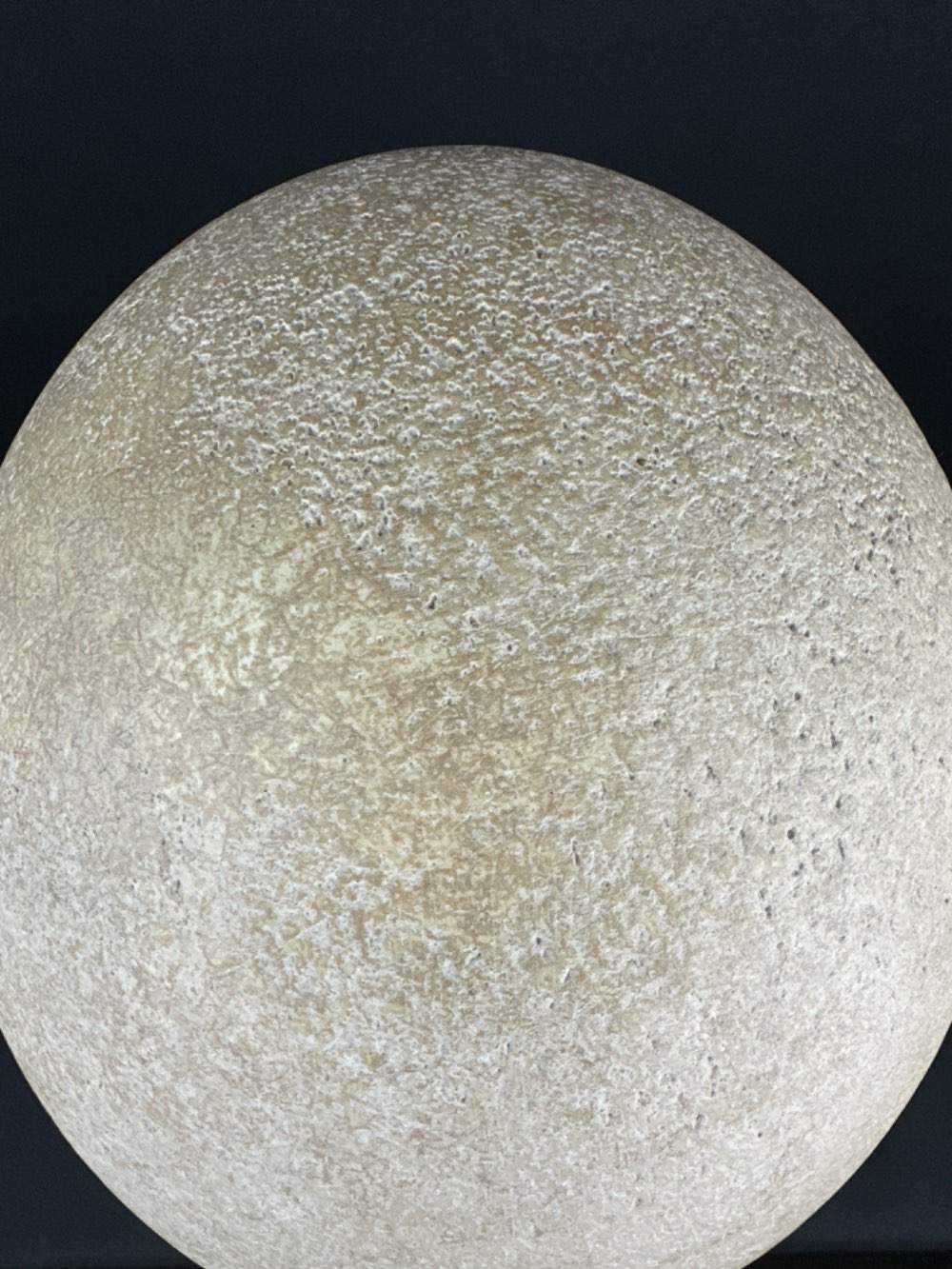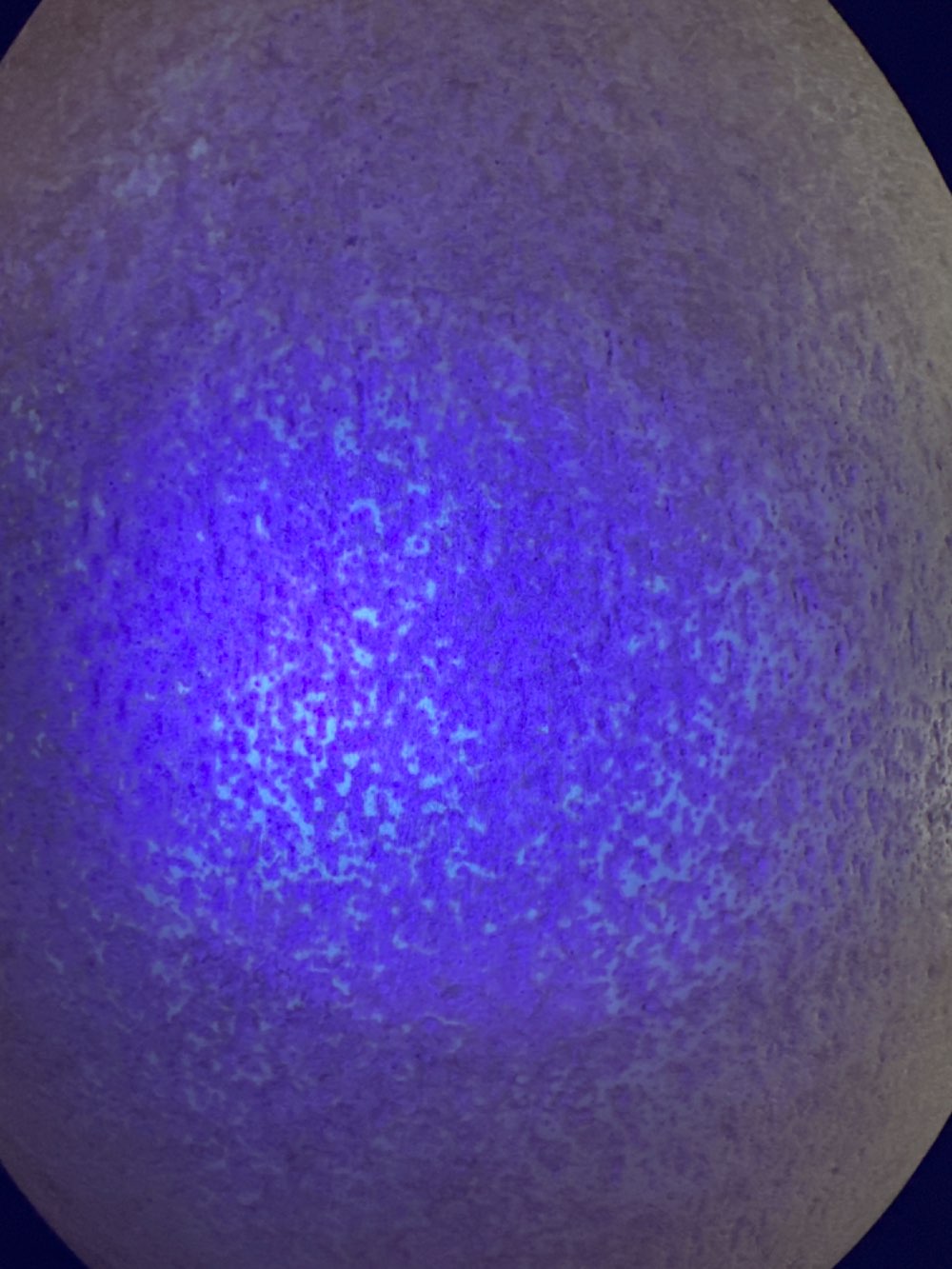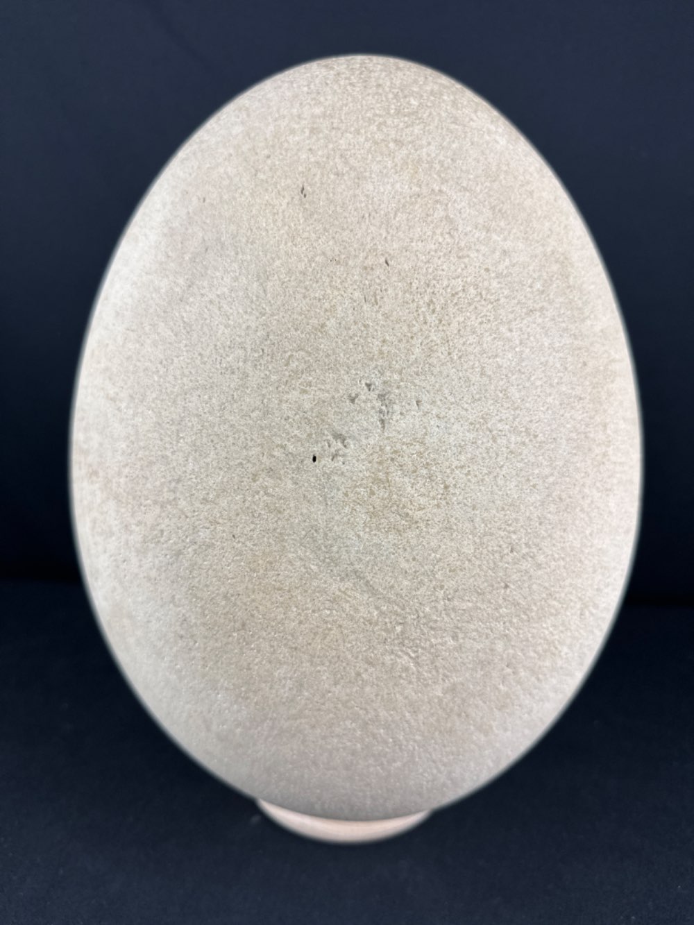 Many of the complete eggs have a hole in them which could be because natives used them in the past for water containers although this is not for sure. This egg also had a small hole which is professionally closed for optical reasons. With UV light it is recognizable as it doesn't show the green reflections. Picture with UV light included.