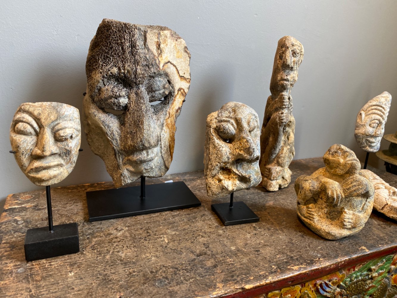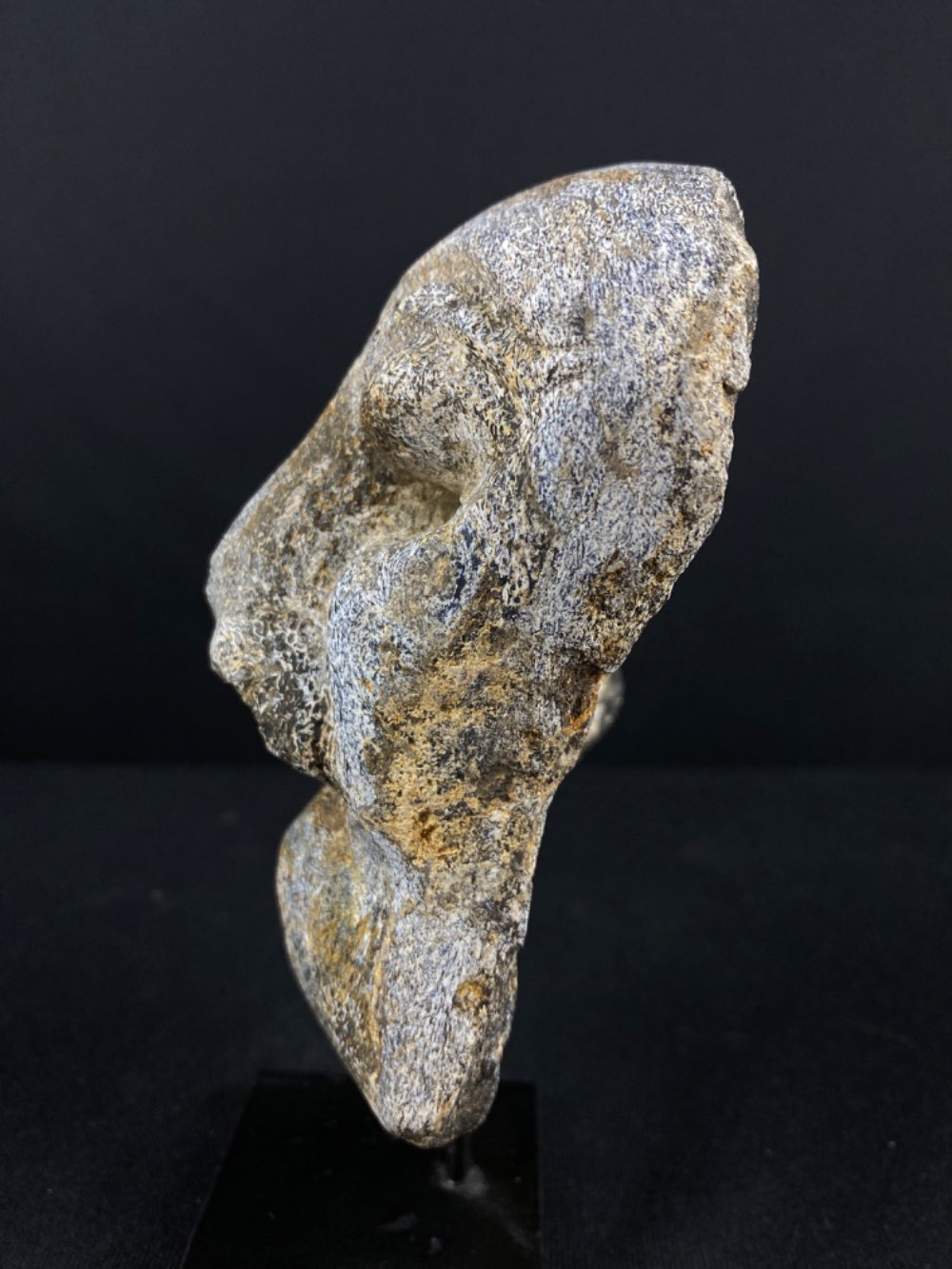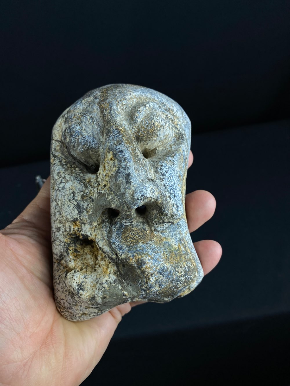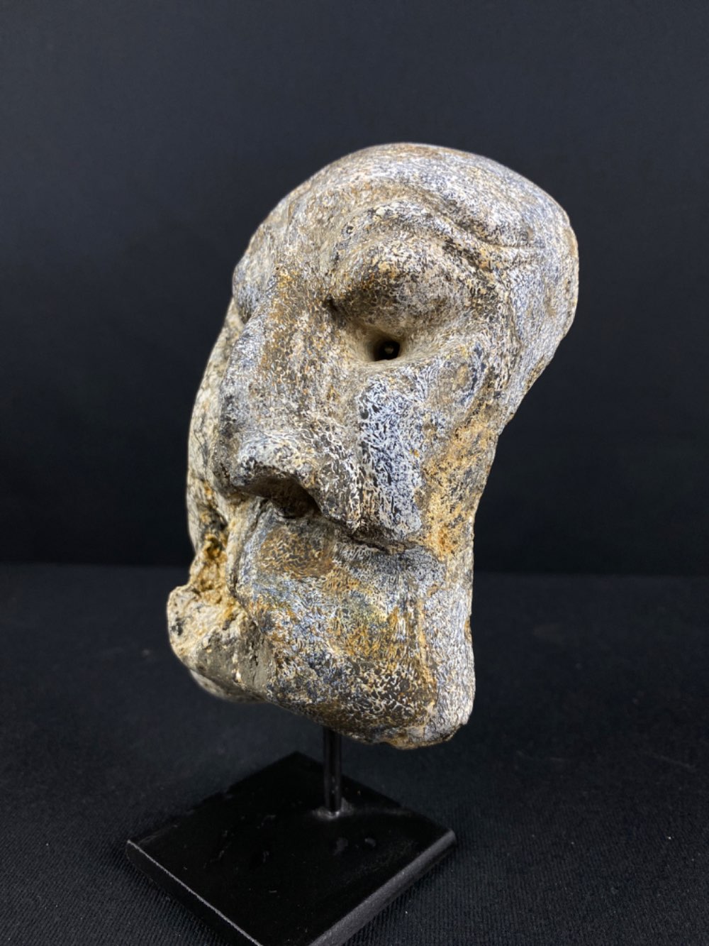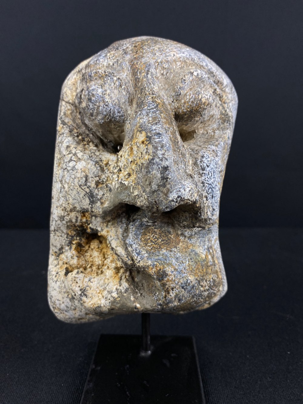 Nicely carved sculpture of a face on Genuine Fossil Mammoth Bone. Good workmanship with a resemblance to a tribal mask.