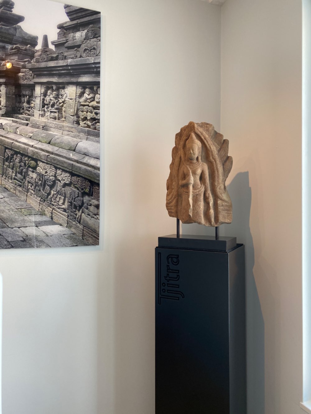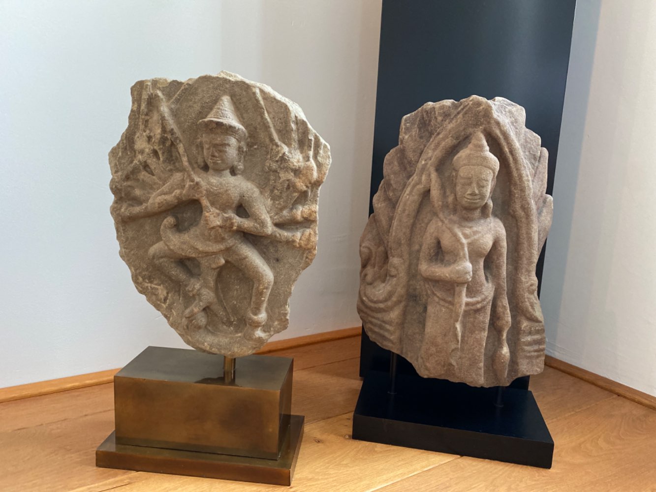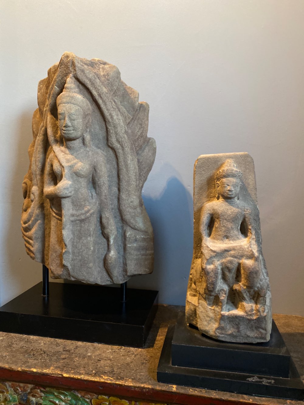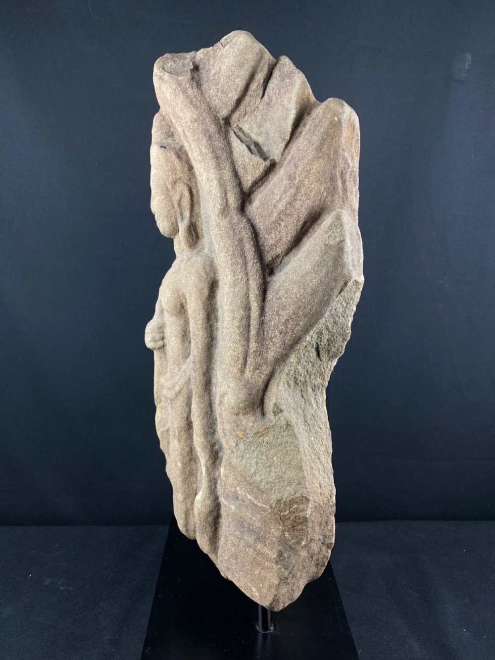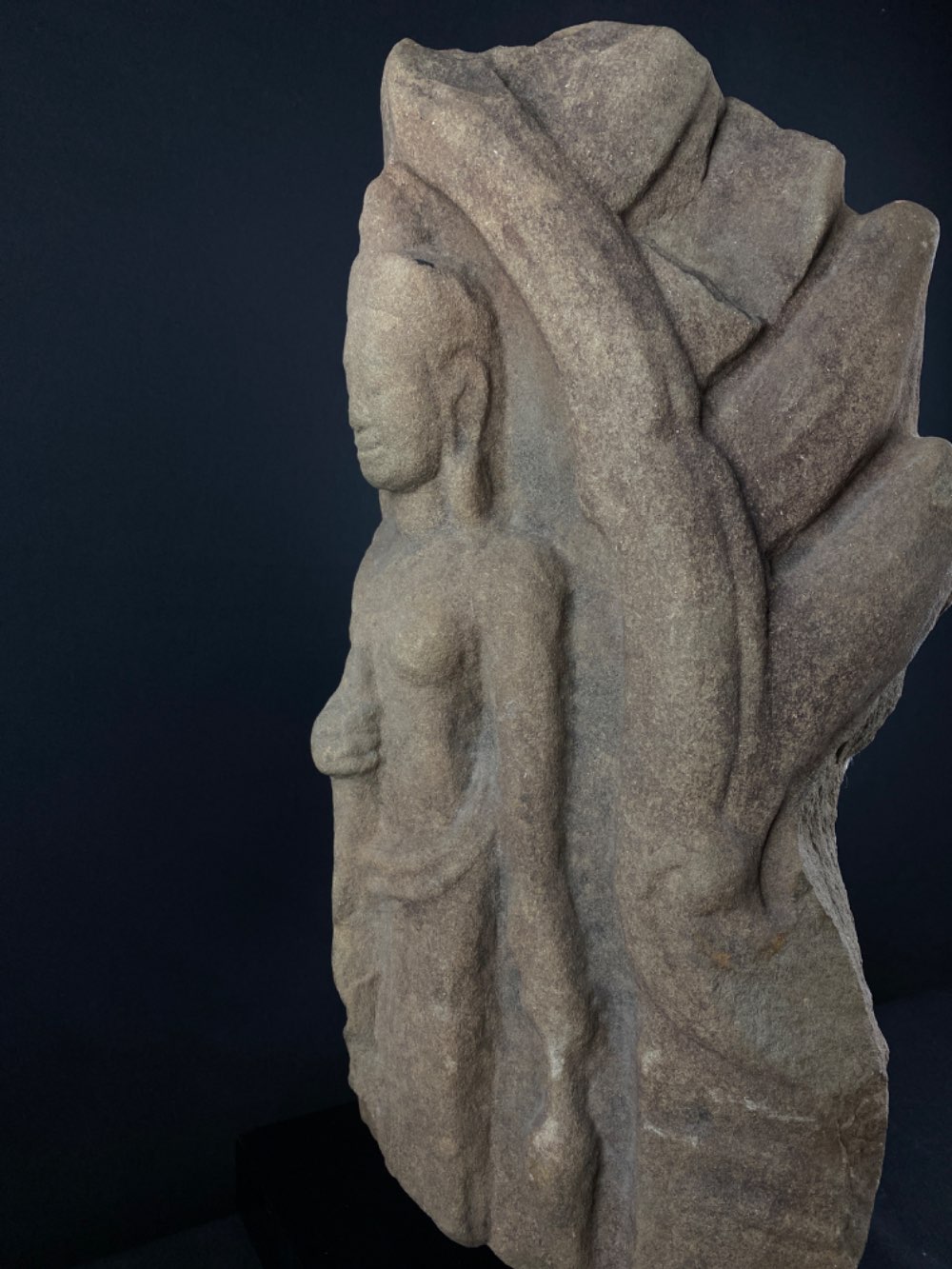 Very nice Sandstone fragment of an Apsara from Cambodia, 12-13th century