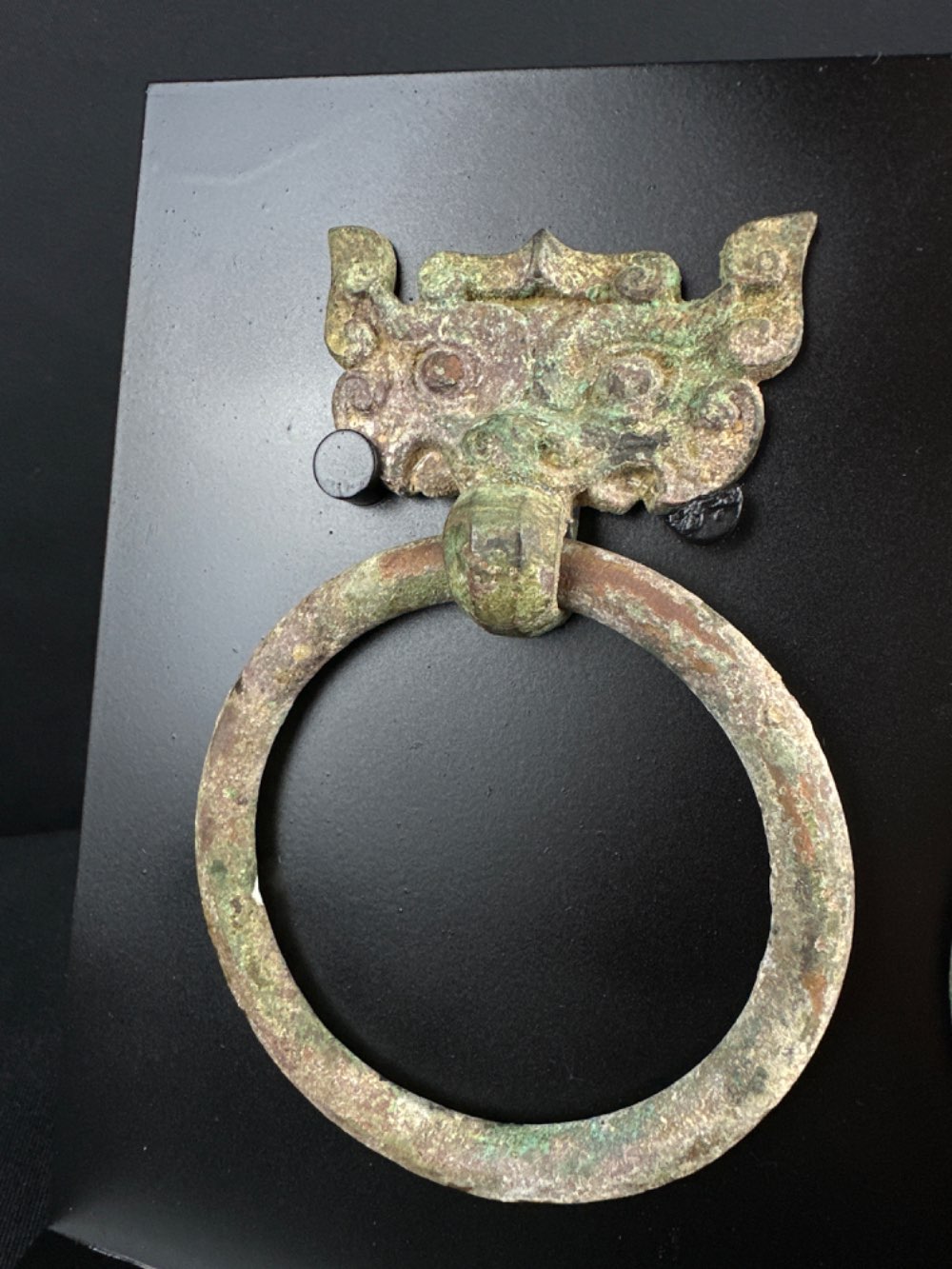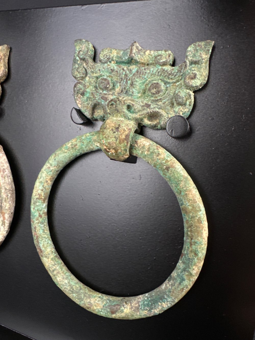 Chinese bronze taotie handles from the Han Dynasty, 206 BC-220 AD