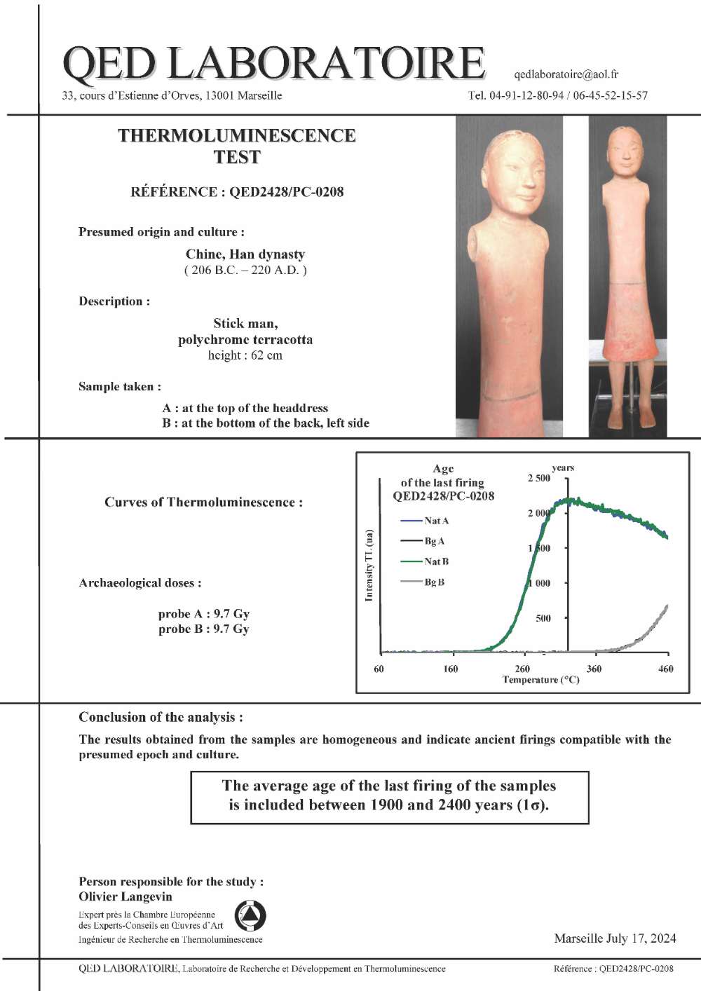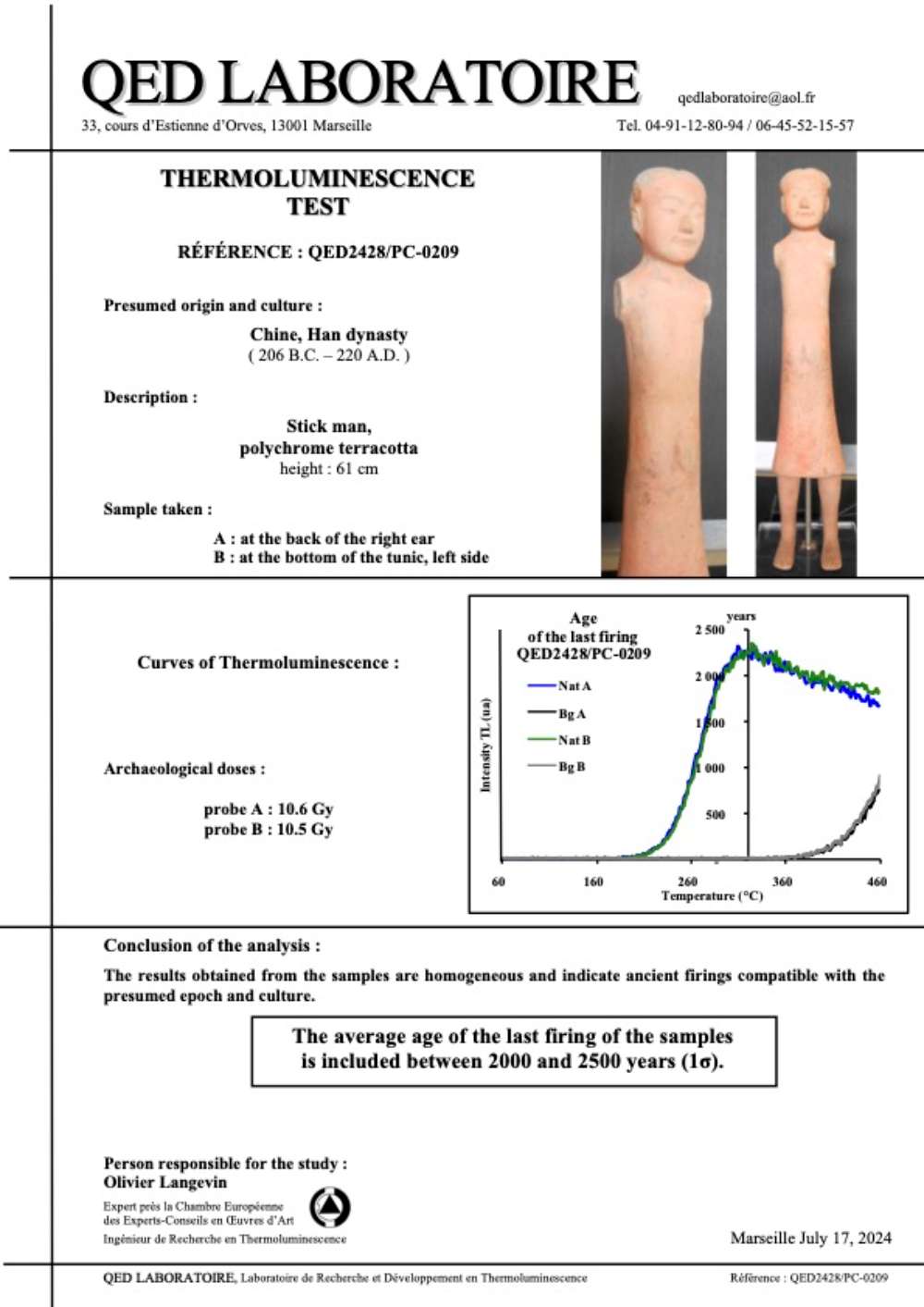 A pottery stick figure set from the han dynasty (206 BC-220 AD), TL tested