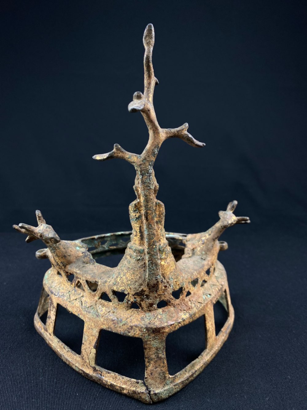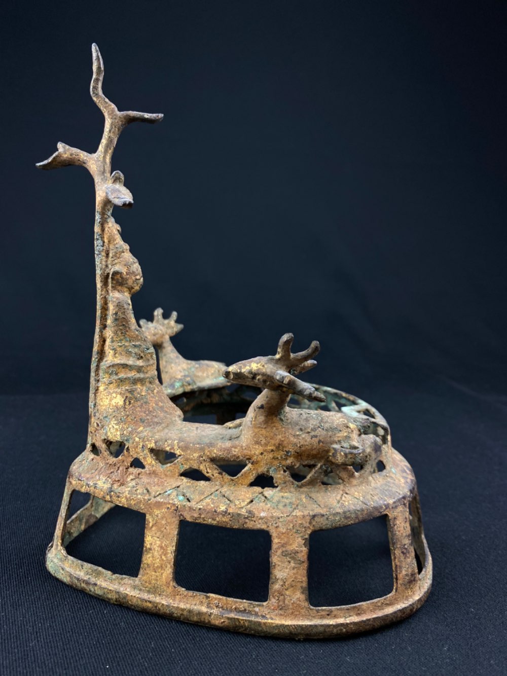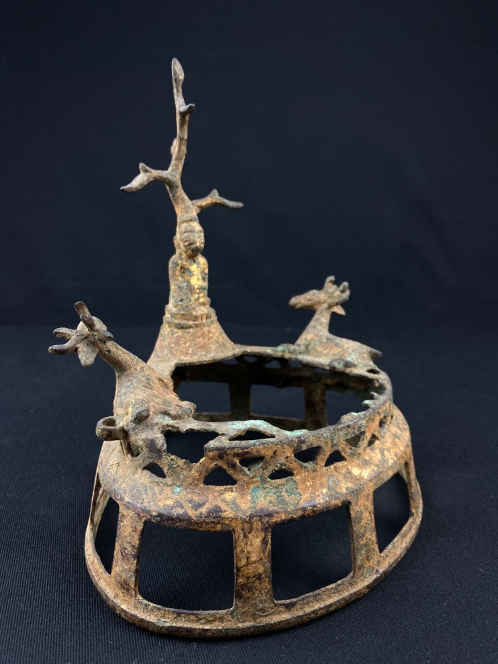 A bronze Pagan altar Buddha with a tree on top and 2 deer, 17th century from Myanmar was added to your cart