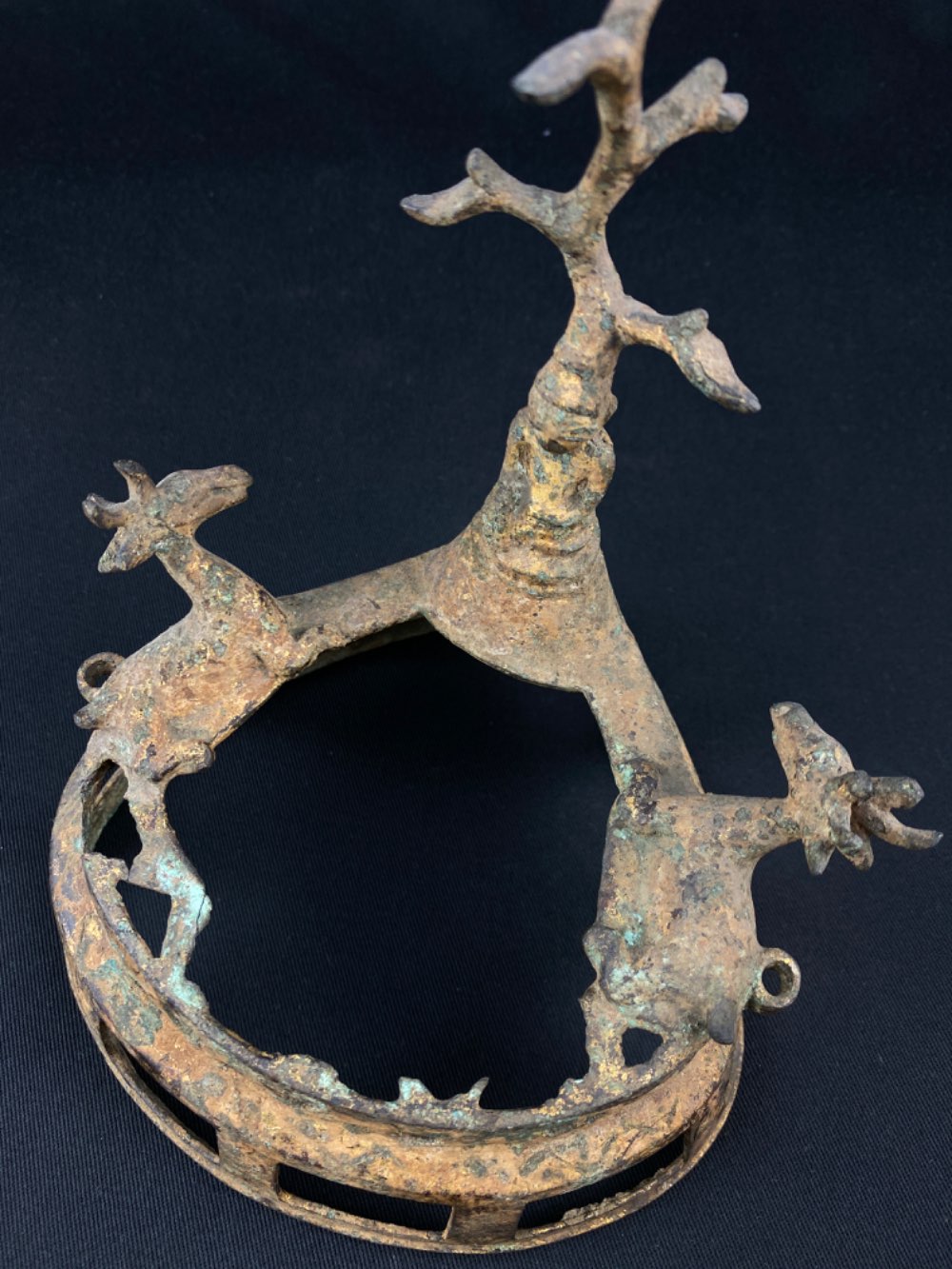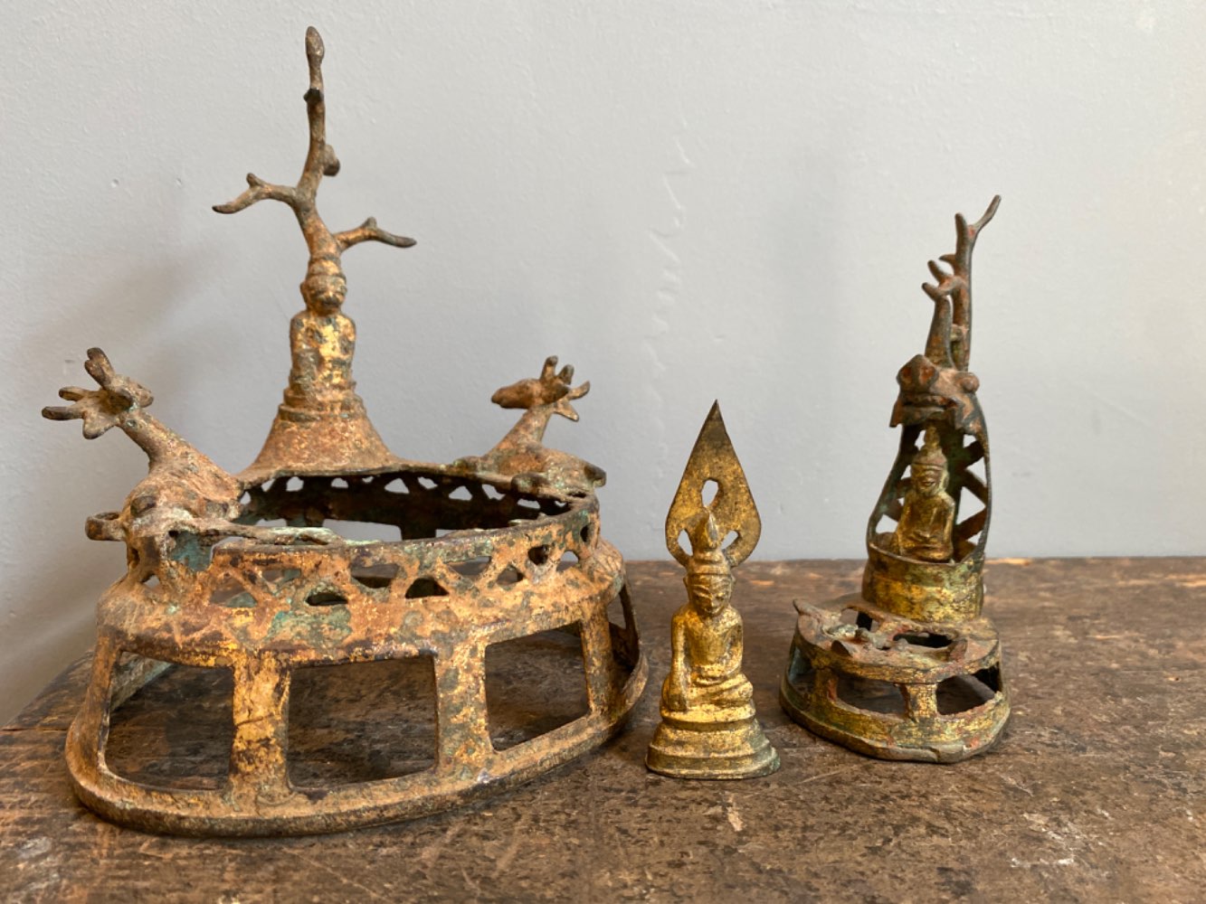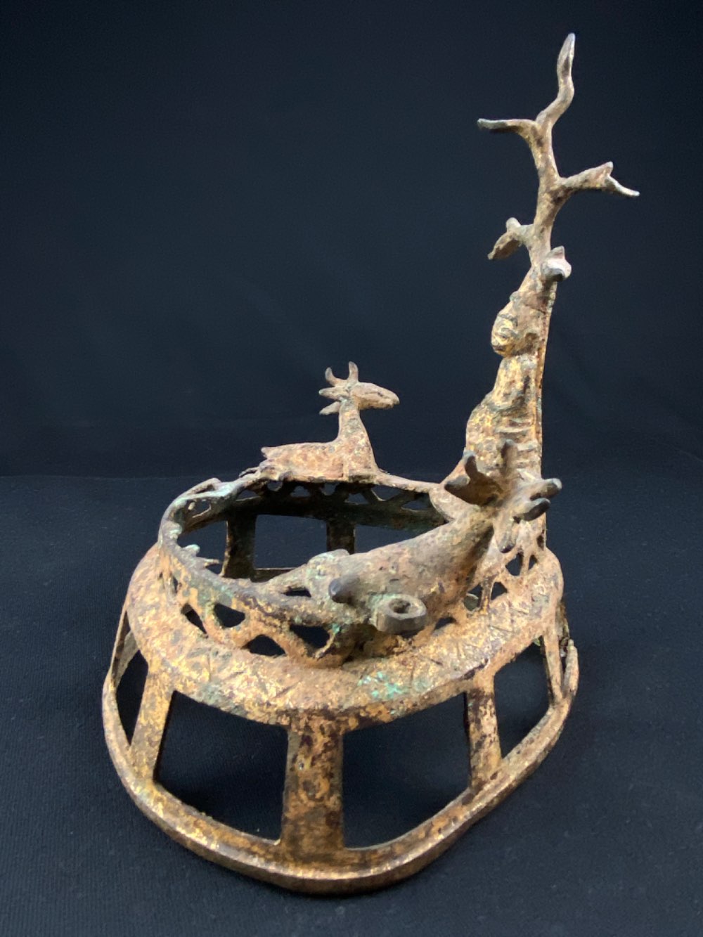 A bronze Pagan altar Buddha with a tree on top and 2 deer, 17th century from Myanmar was added to your cart