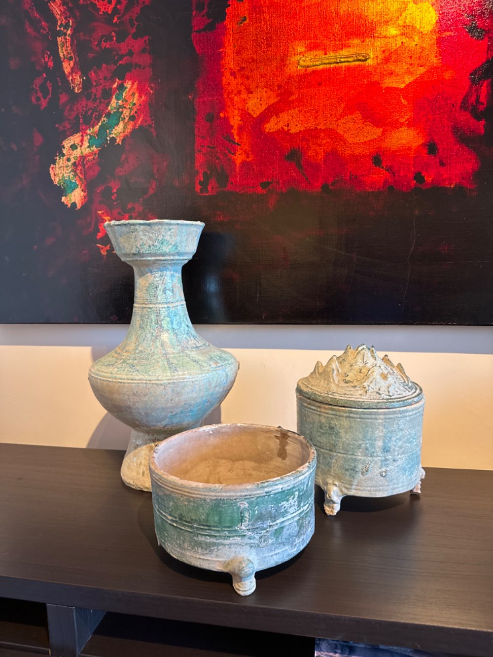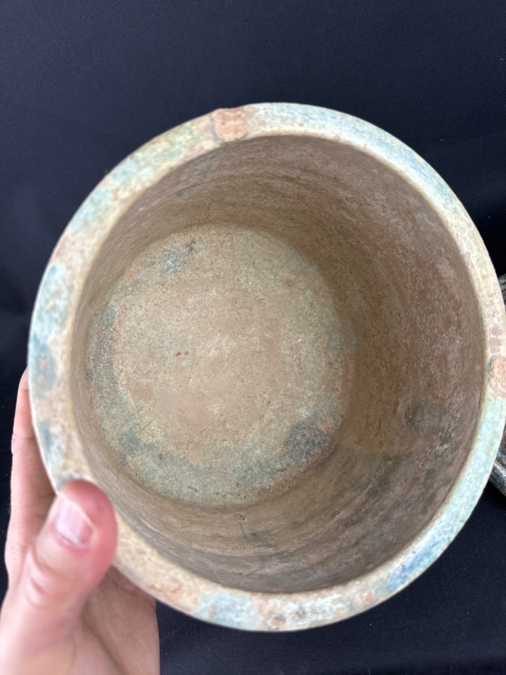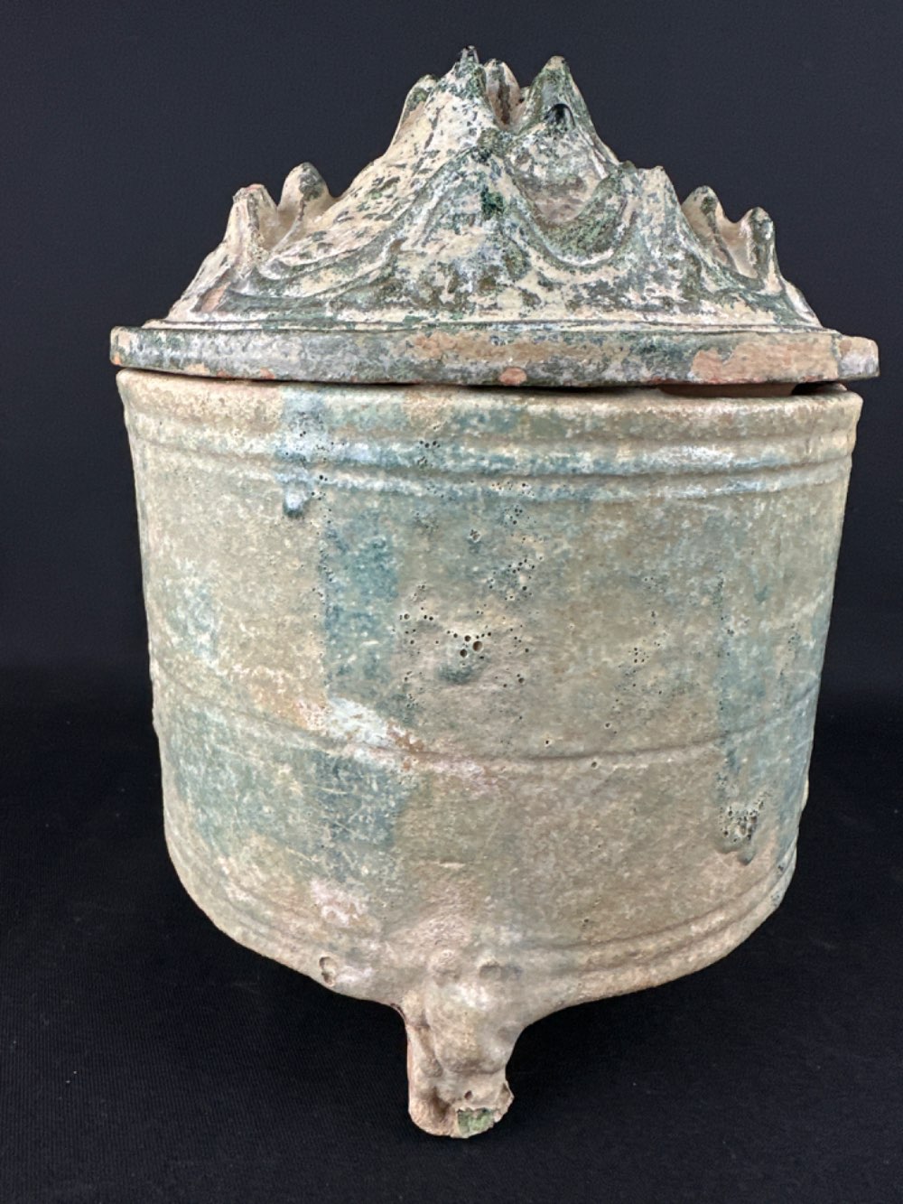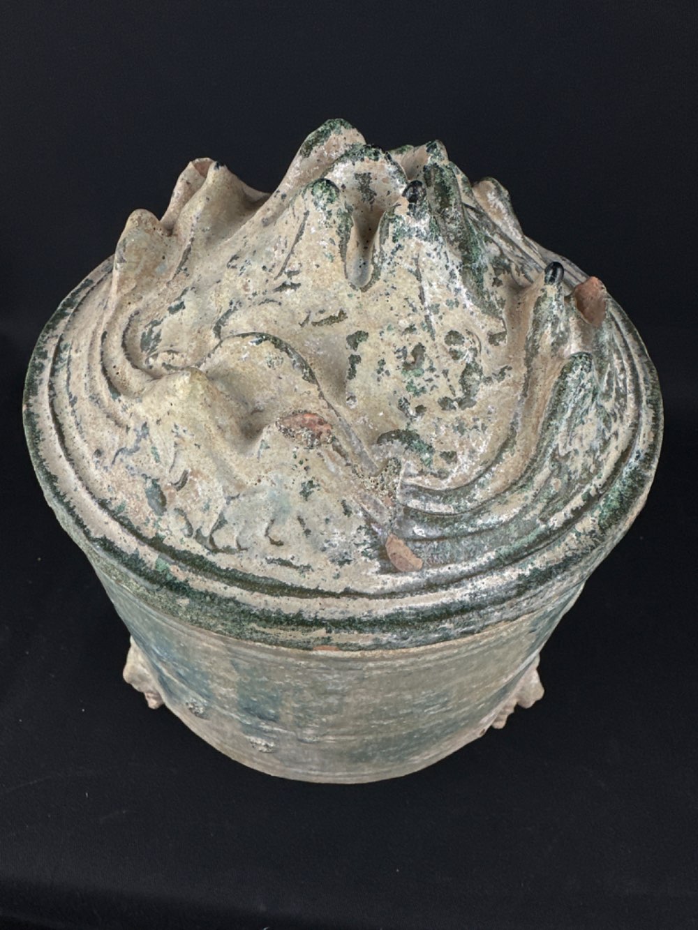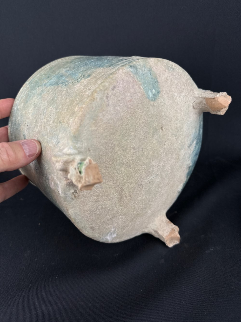 During the Han Dynasty in China (206 BCE – 220 CE), this type of pottery known for its unique iridescent green lead glaze emerged alongside other ceramic styles. This pottery, featuring an iridescent or rainbow-like effect on its green glaze, contributed to the rich diversity of Han Dynasty ceramics.