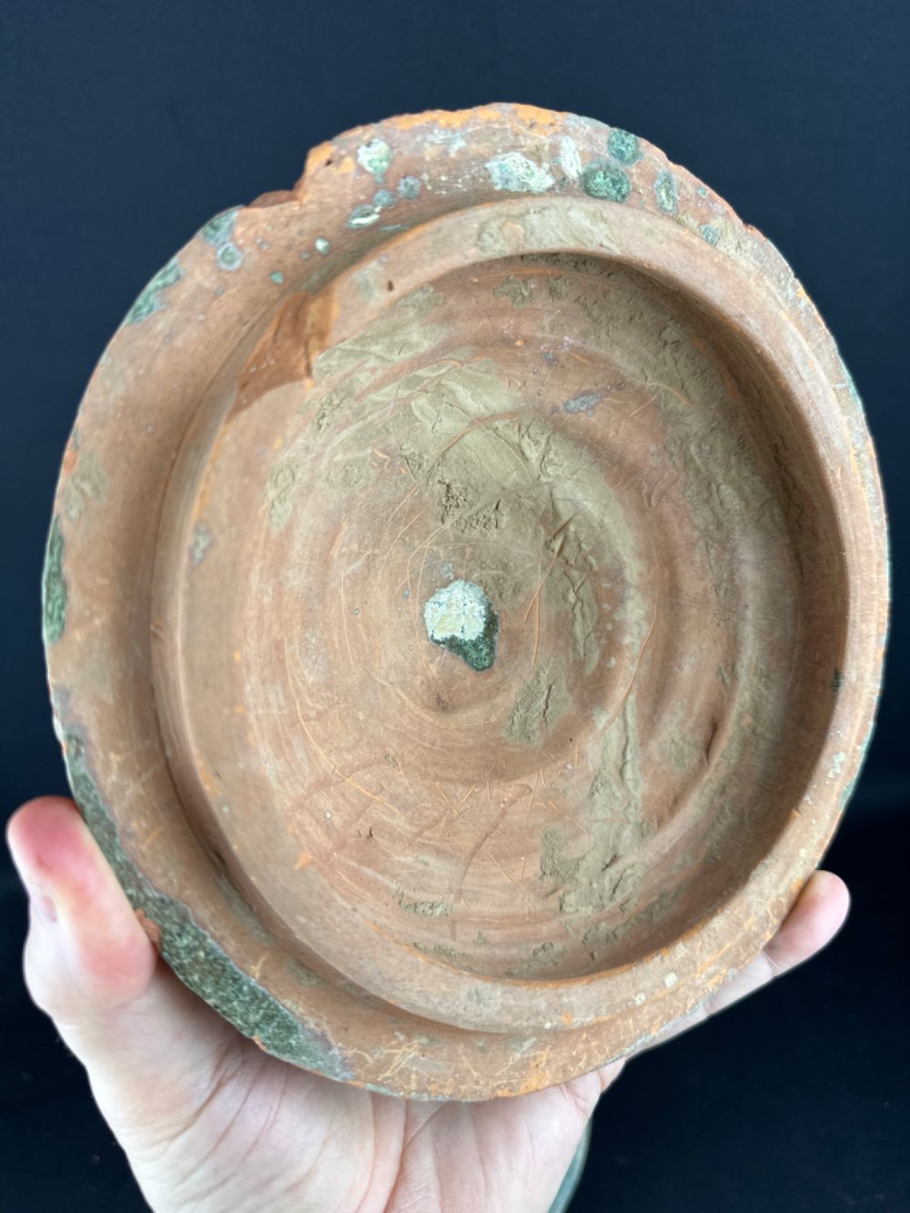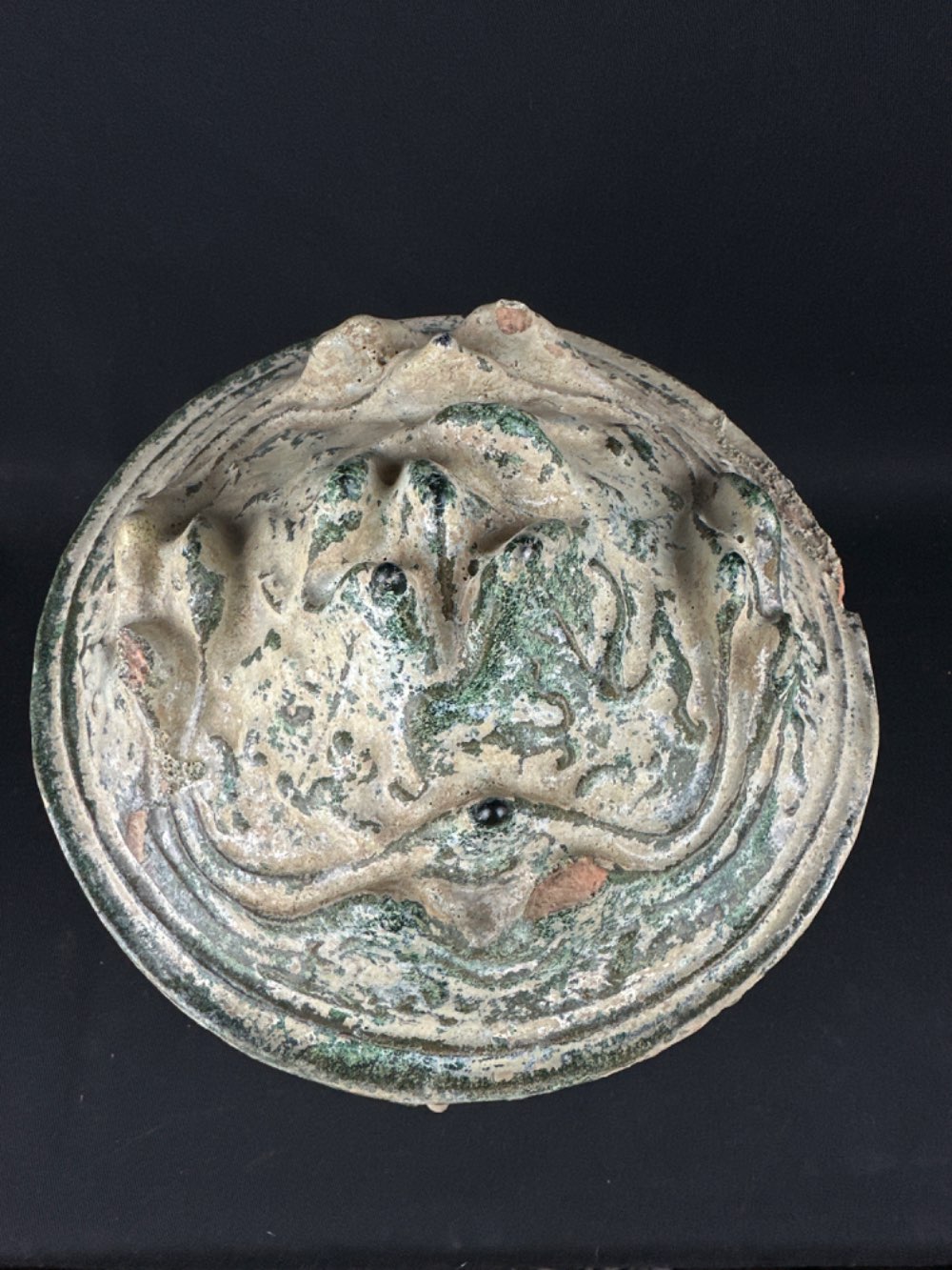 Distinctive Glaze: The pottery was characterized by a striking green lead glaze that displayed an iridescent sheen or iridescence. This iridescent effect created shifting colors or a play of colors, resembling a spectrum of hues, such as blues, purples, and greens, depending on the angle of light.