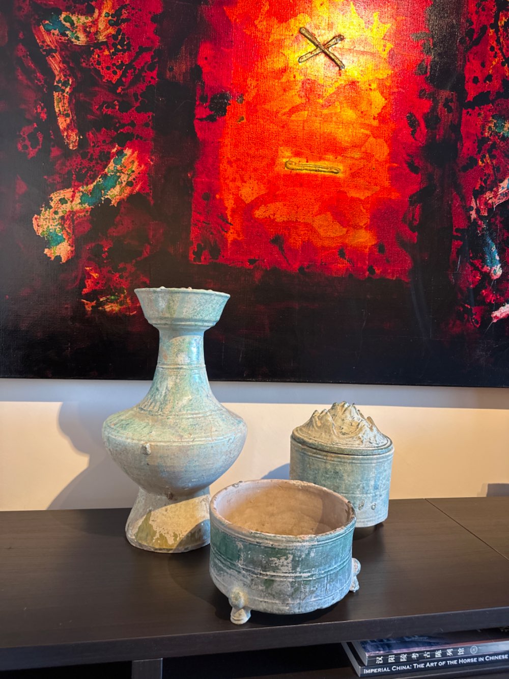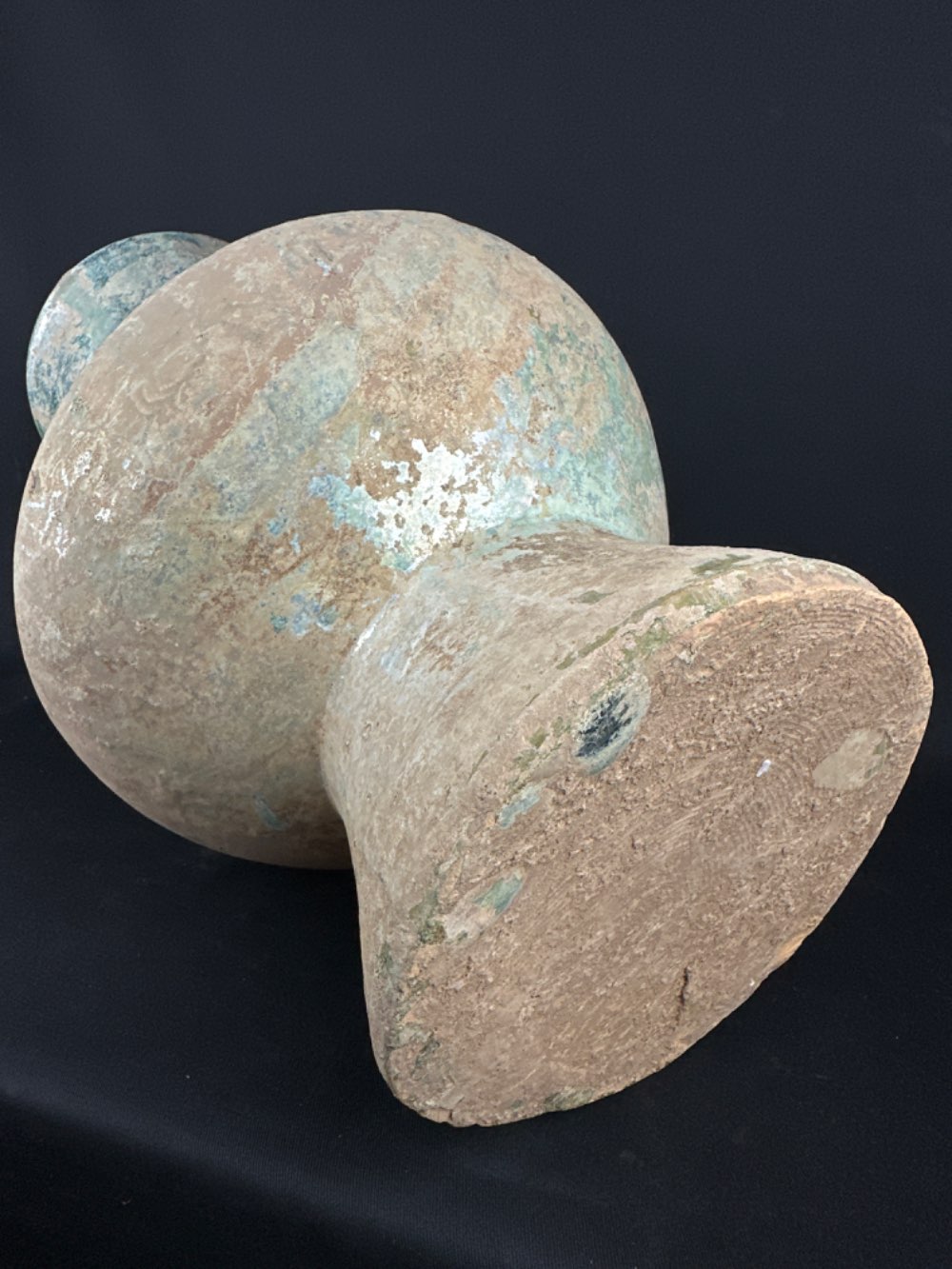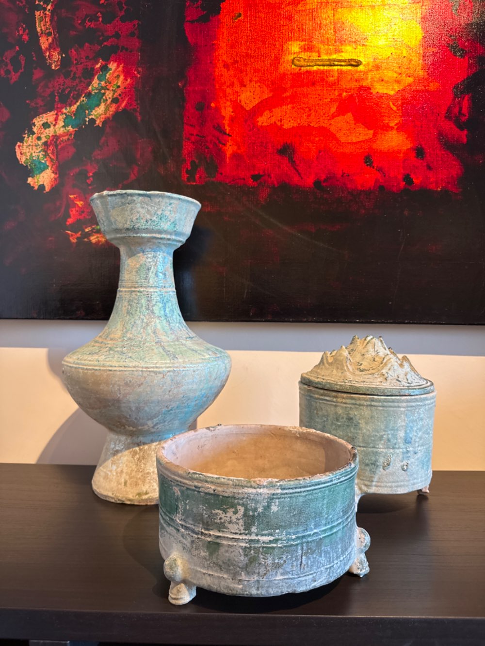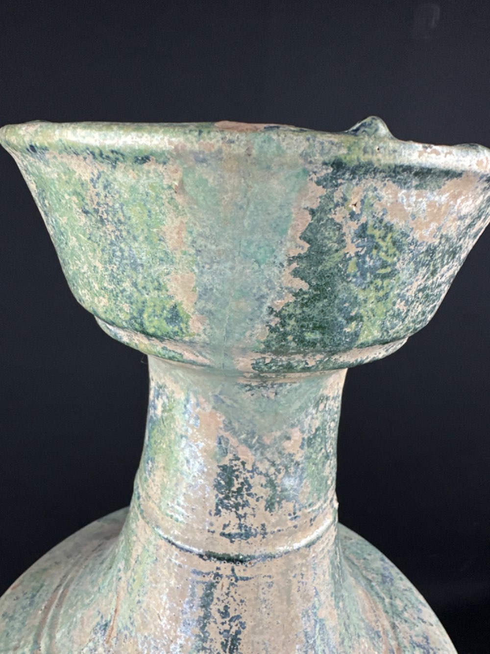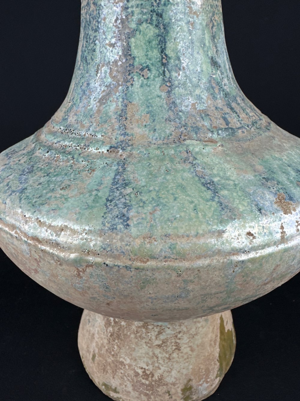 During the Han Dynasty in China (206 BCE – 220 CE), this type of pottery known for its unique iridescent green lead glaze emerged alongside other ceramic styles. This pottery, featuring an iridescent or rainbow-like effect on its green glaze, contributed to the rich diversity of Han Dynasty ceramics.
