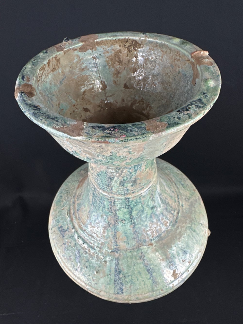 Variety of Forms: Iridescent green lead glaze pottery encompassed various forms and shapes, including bowls, cups, jars, and other vessels. These items showcased the iridescent effect on their surfaces, enhancing their aesthetic appeal.
