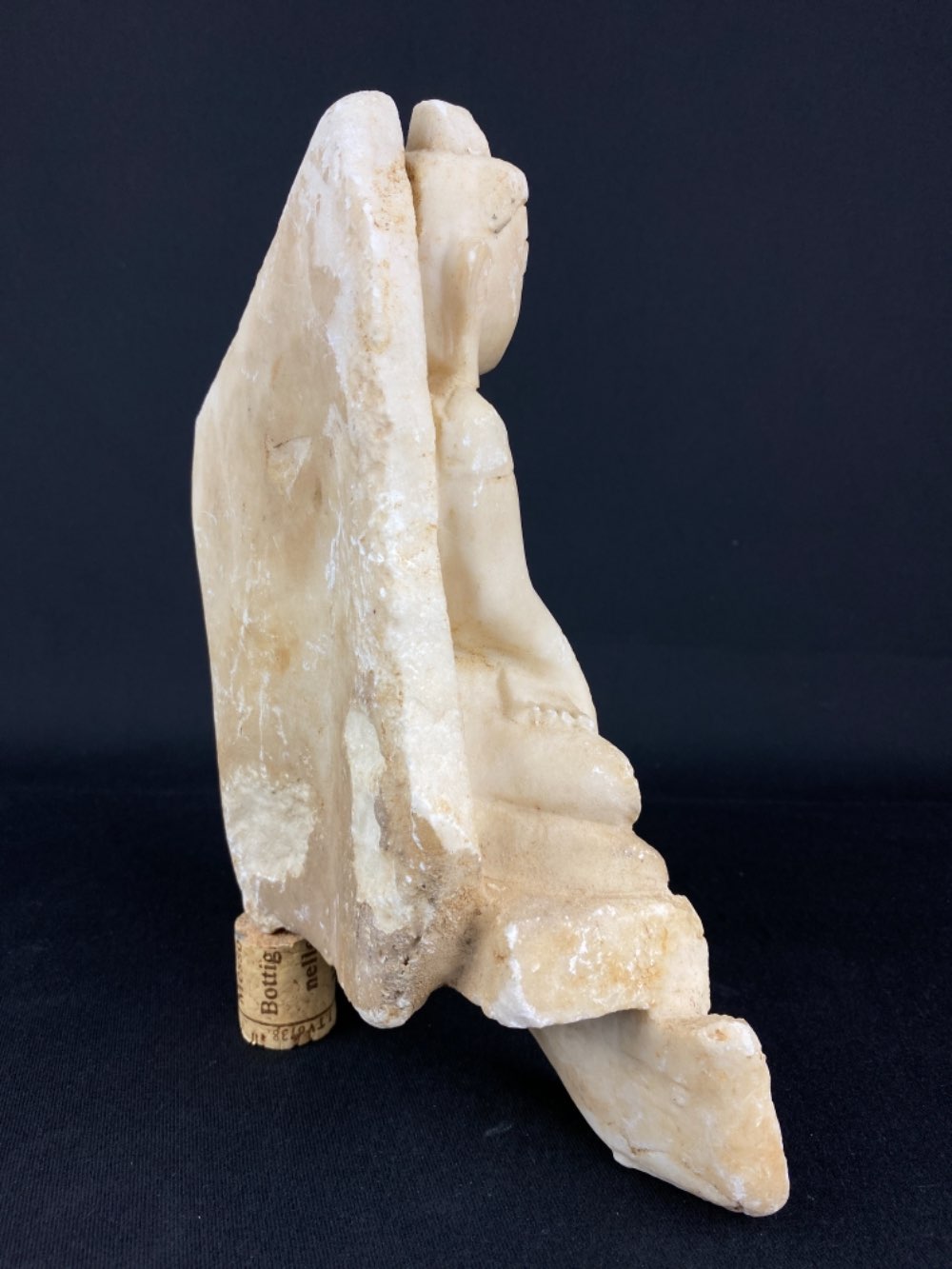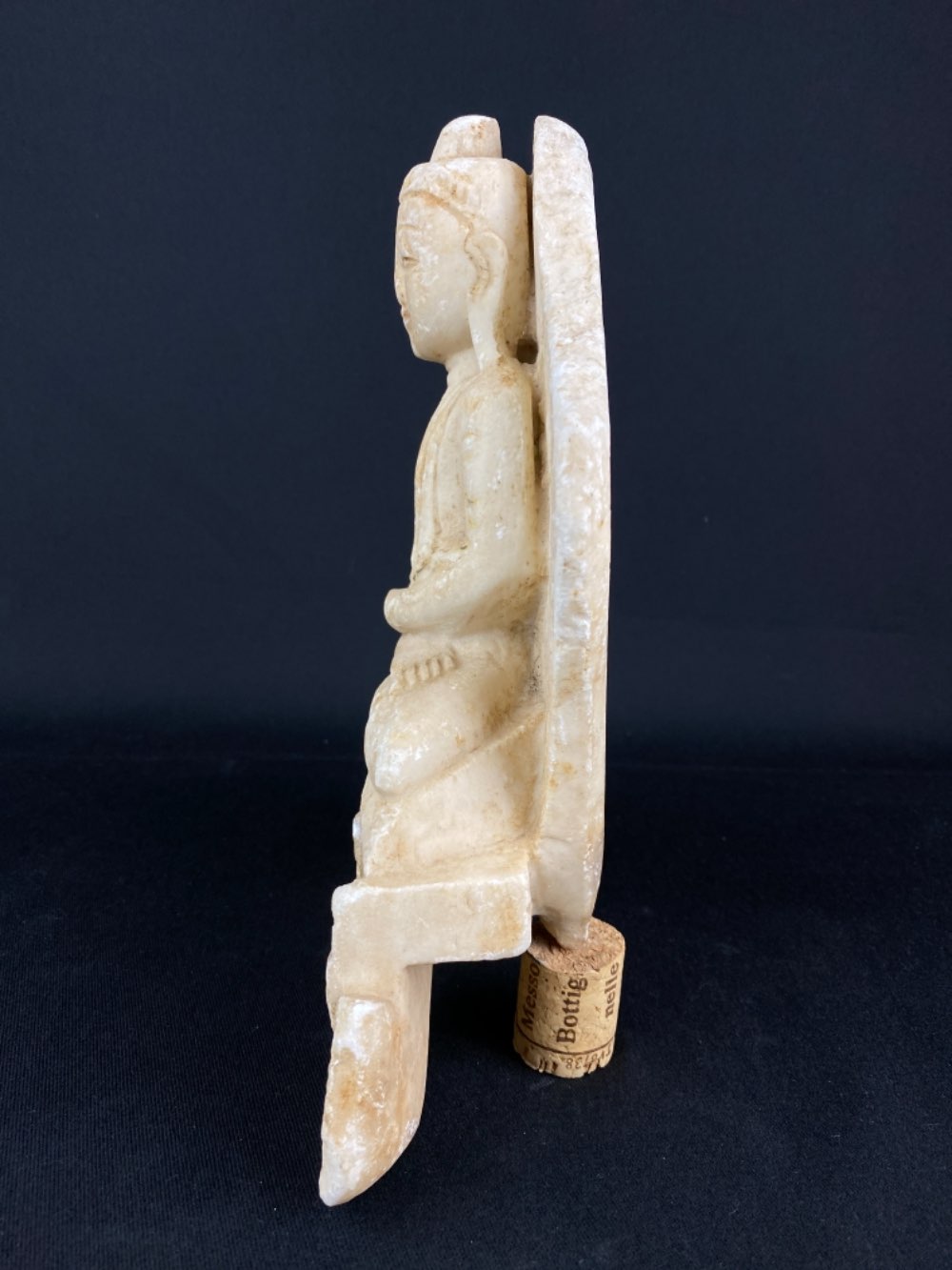 • The back stand is broken of and the statue is standing due to a wine cork which makes it stable