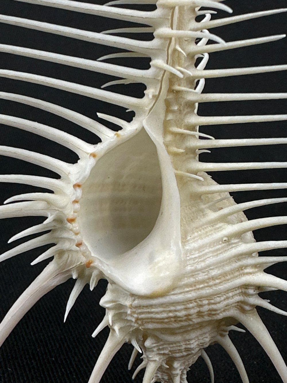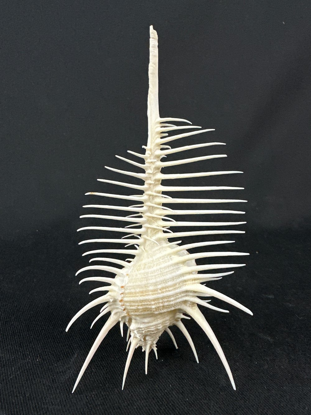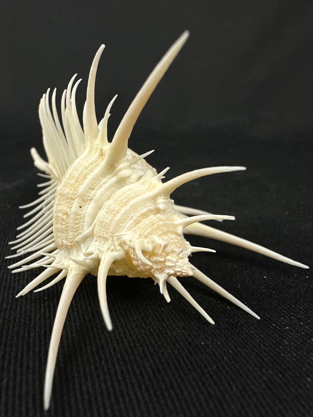 • Structure: The shell is extremely ornate, with dozens of long, thin spines that radiate outward from the whorls.