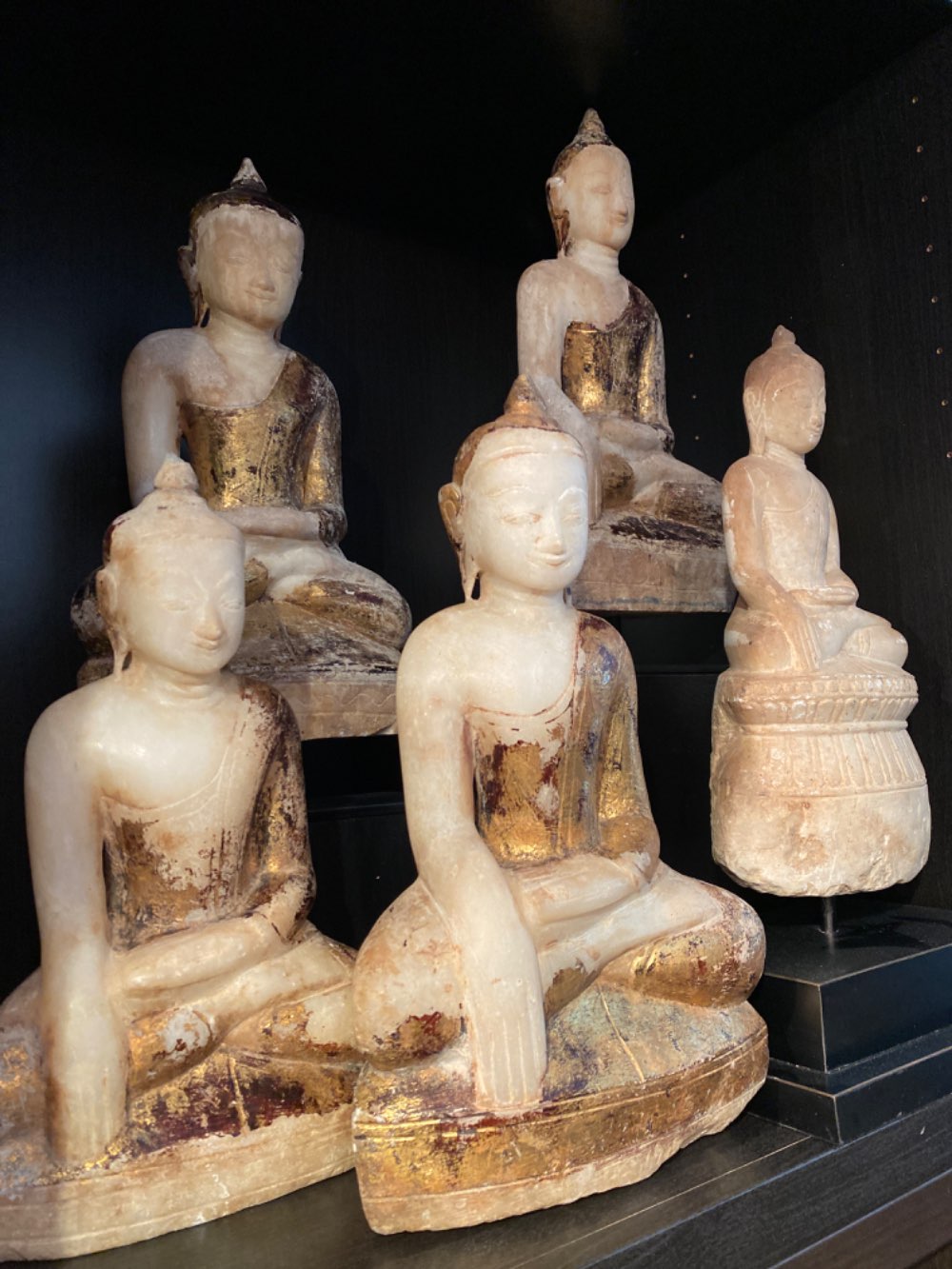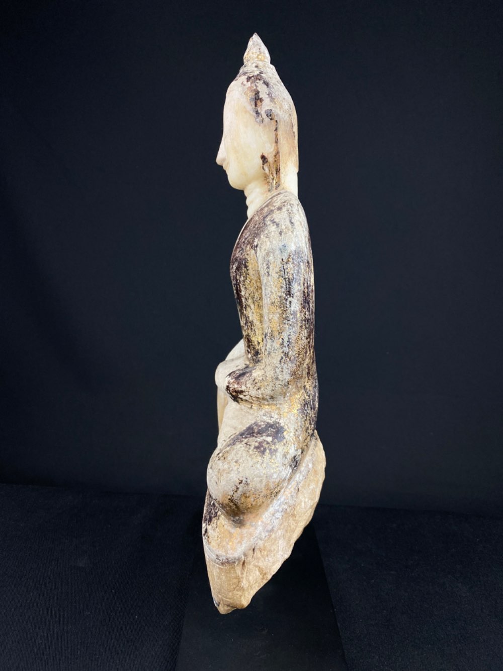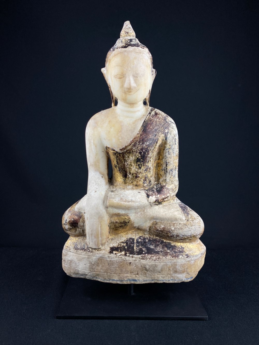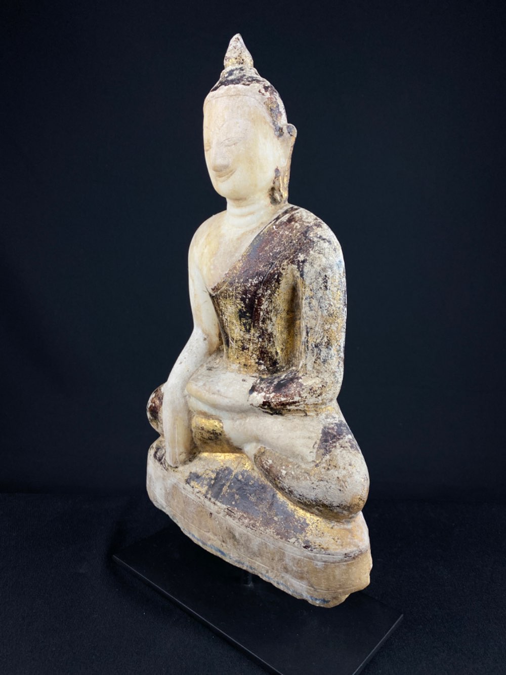 The Buddha is typically shown in a cross-legged position (Padmasana), which represents a stable and grounded meditative state. His posture conveys tranquility, inner peace, and unwavering focus, symbolizing the Buddha’s deep meditative absorption.