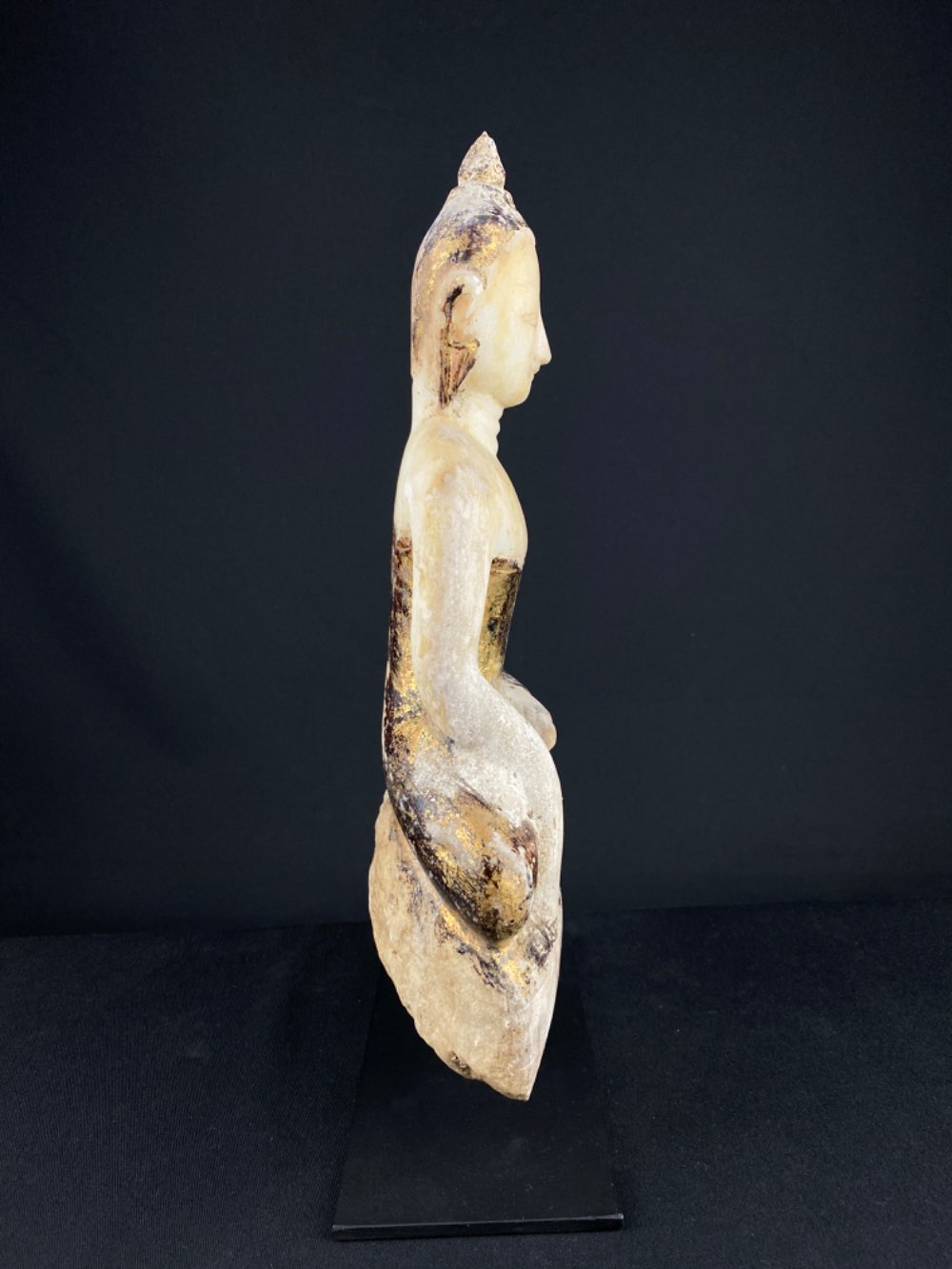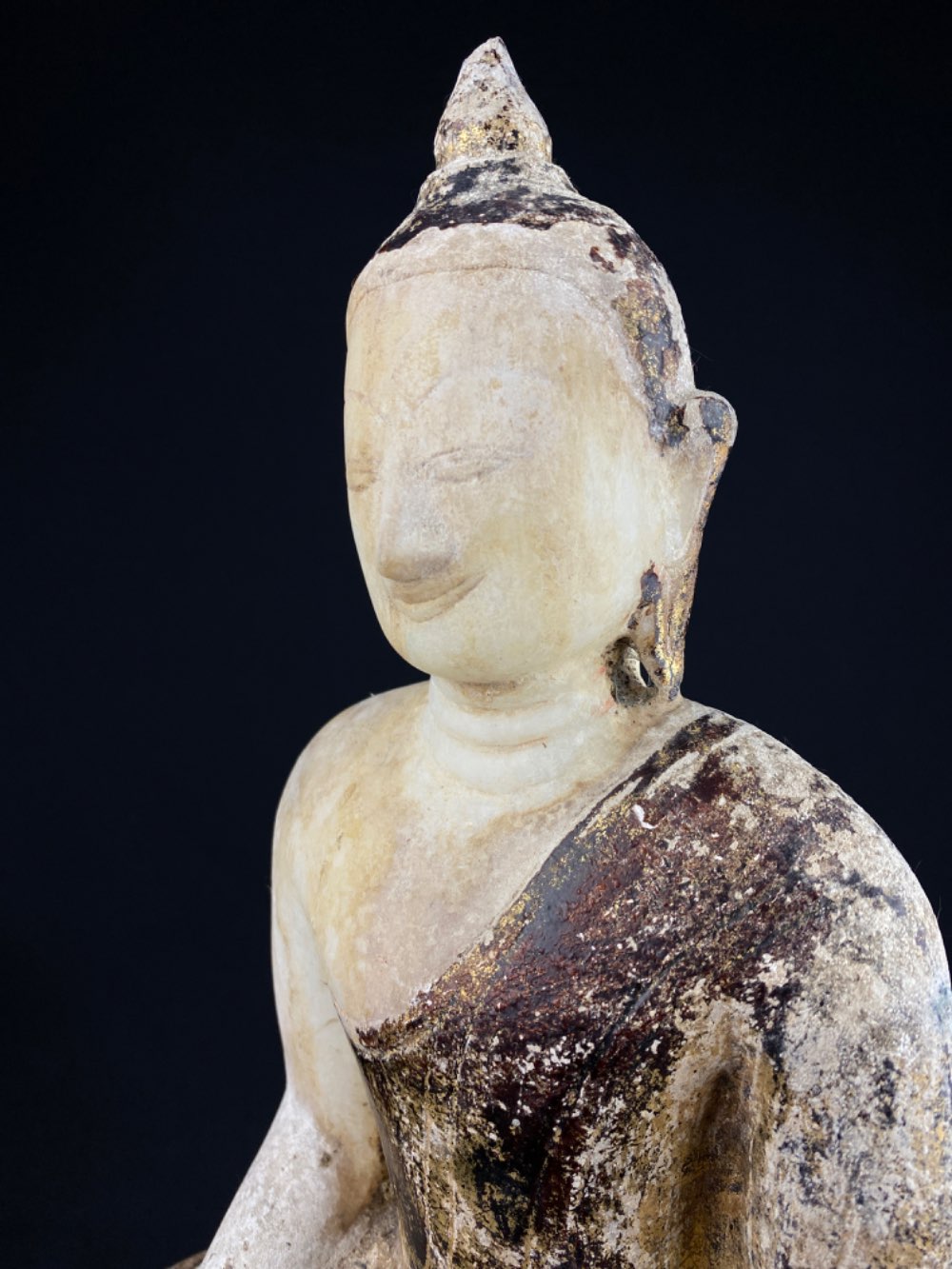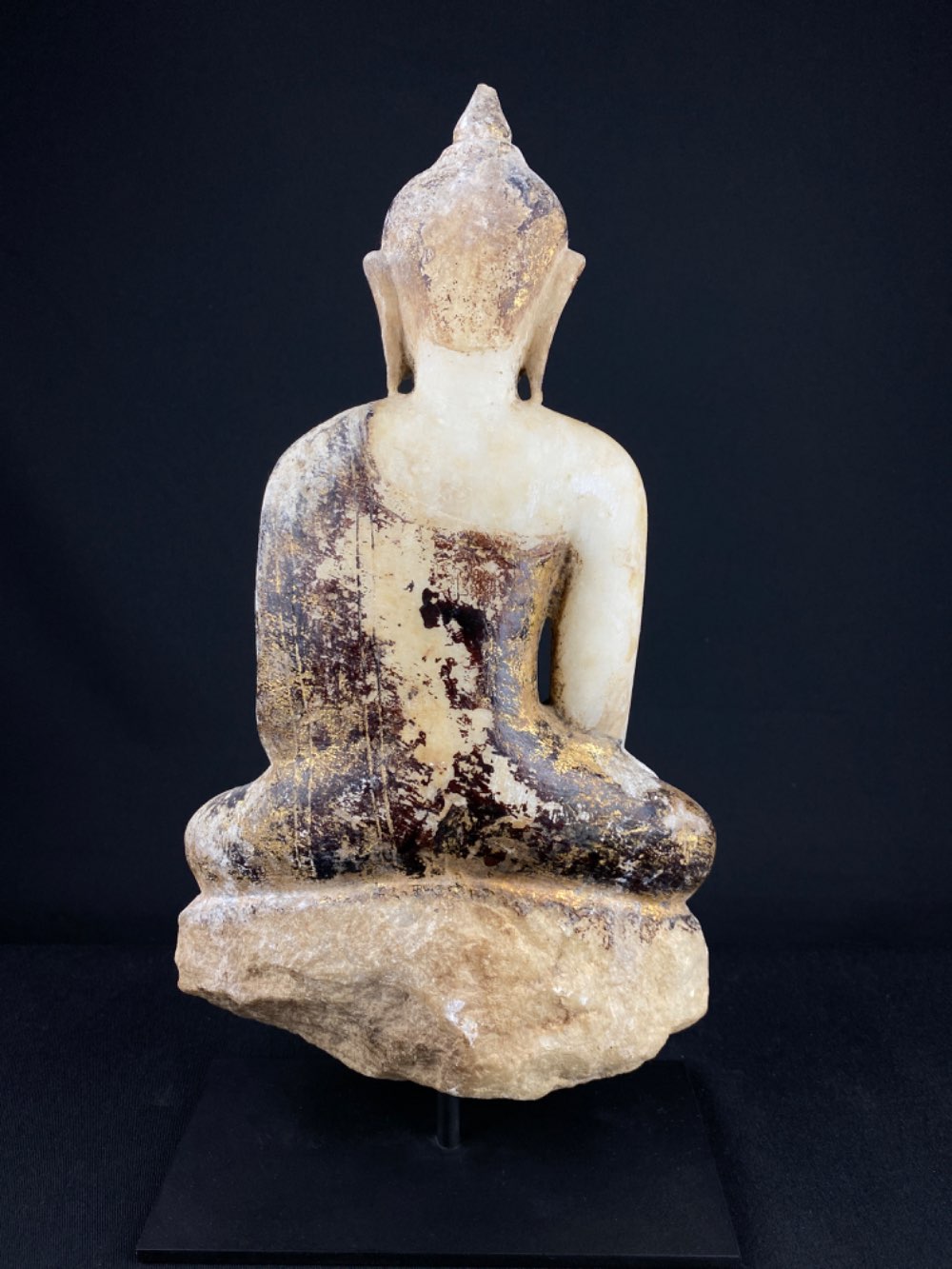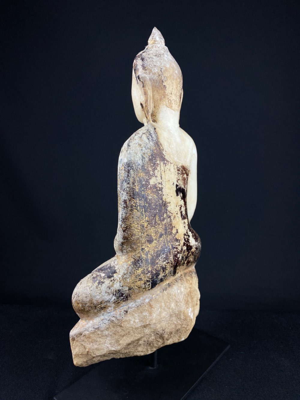 This depiction of the Buddha is not just a piece of art but a visual meditation on the path to enlightenment, encouraging practitioners to stay grounded, pure, and determined in their spiritual journey.