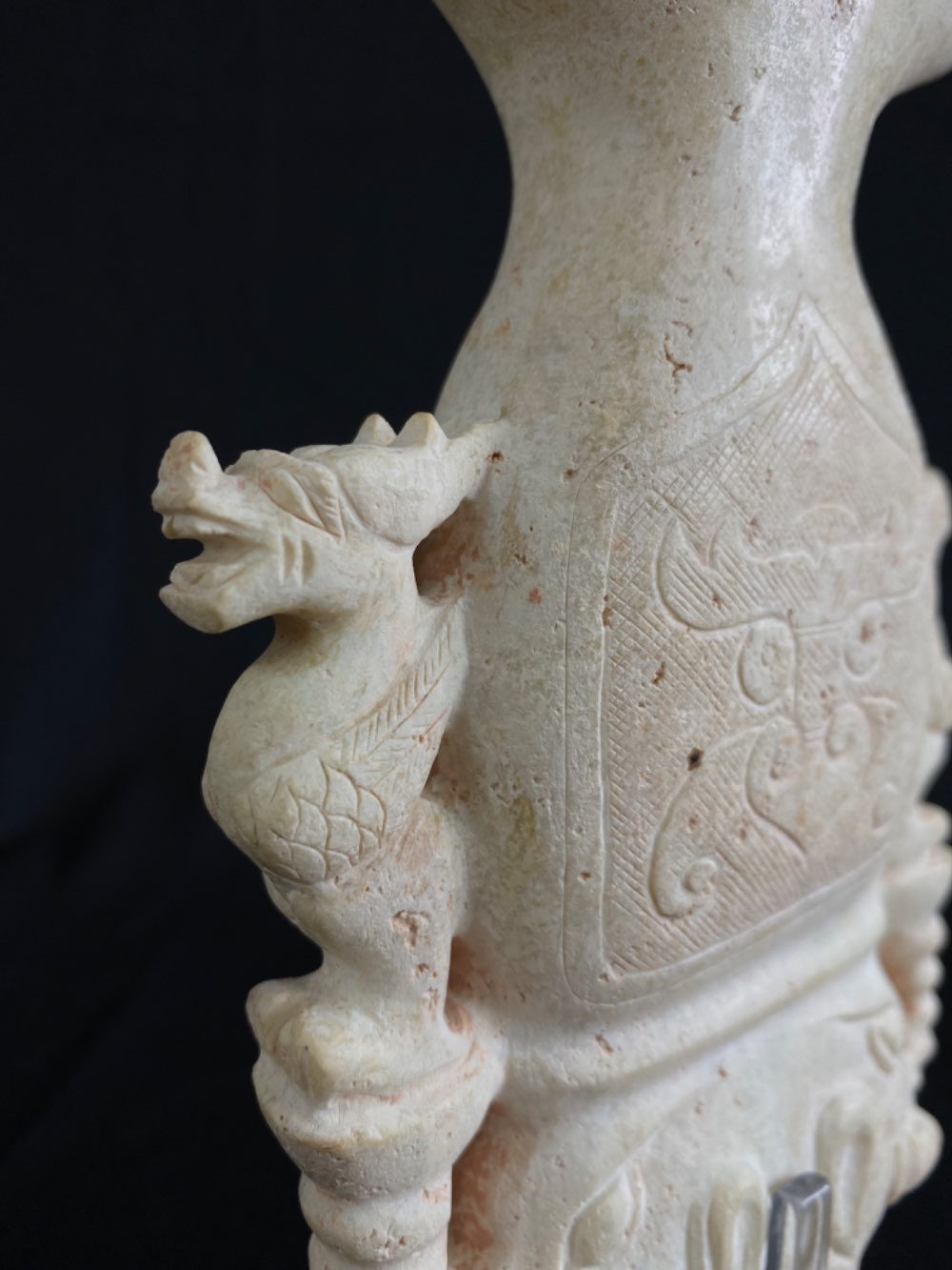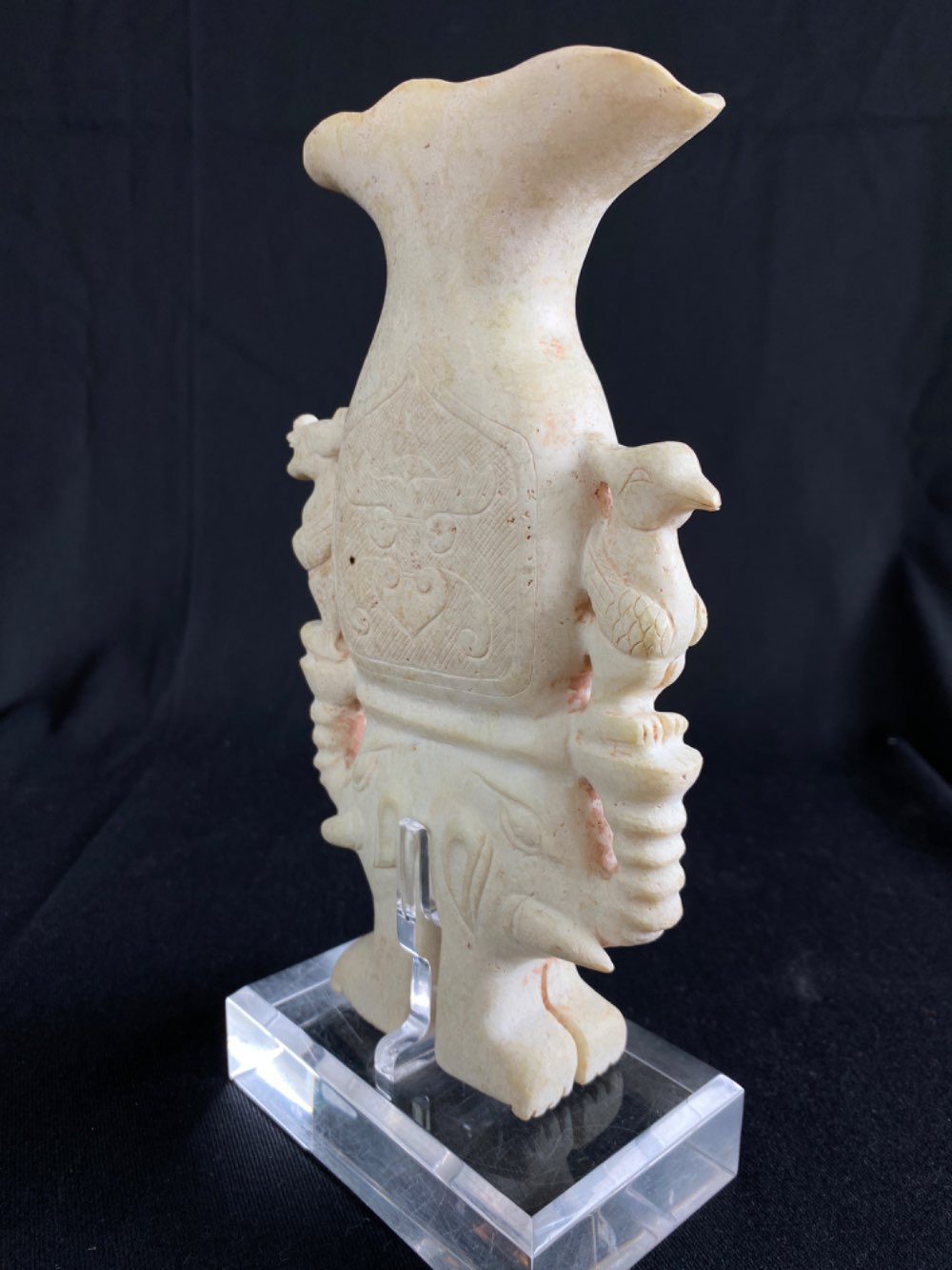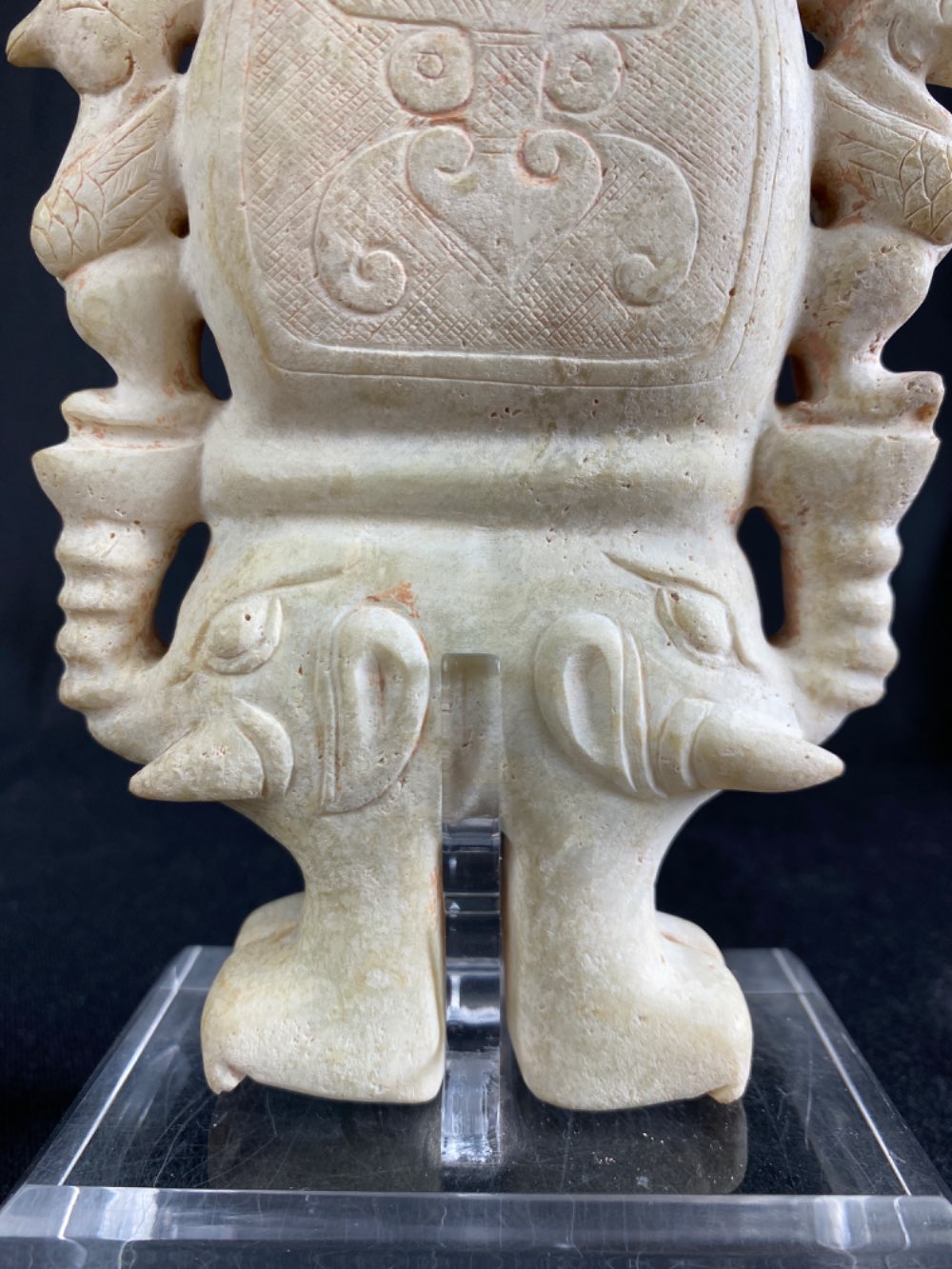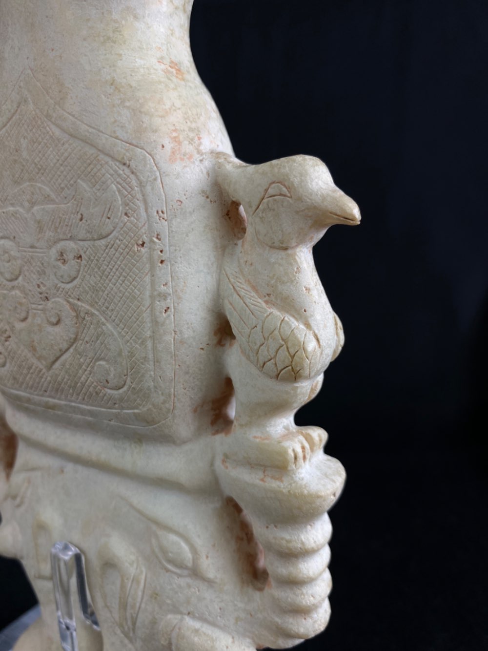 Chalice on elephant with dragon and phoenix white jade from the Tang Dynasty