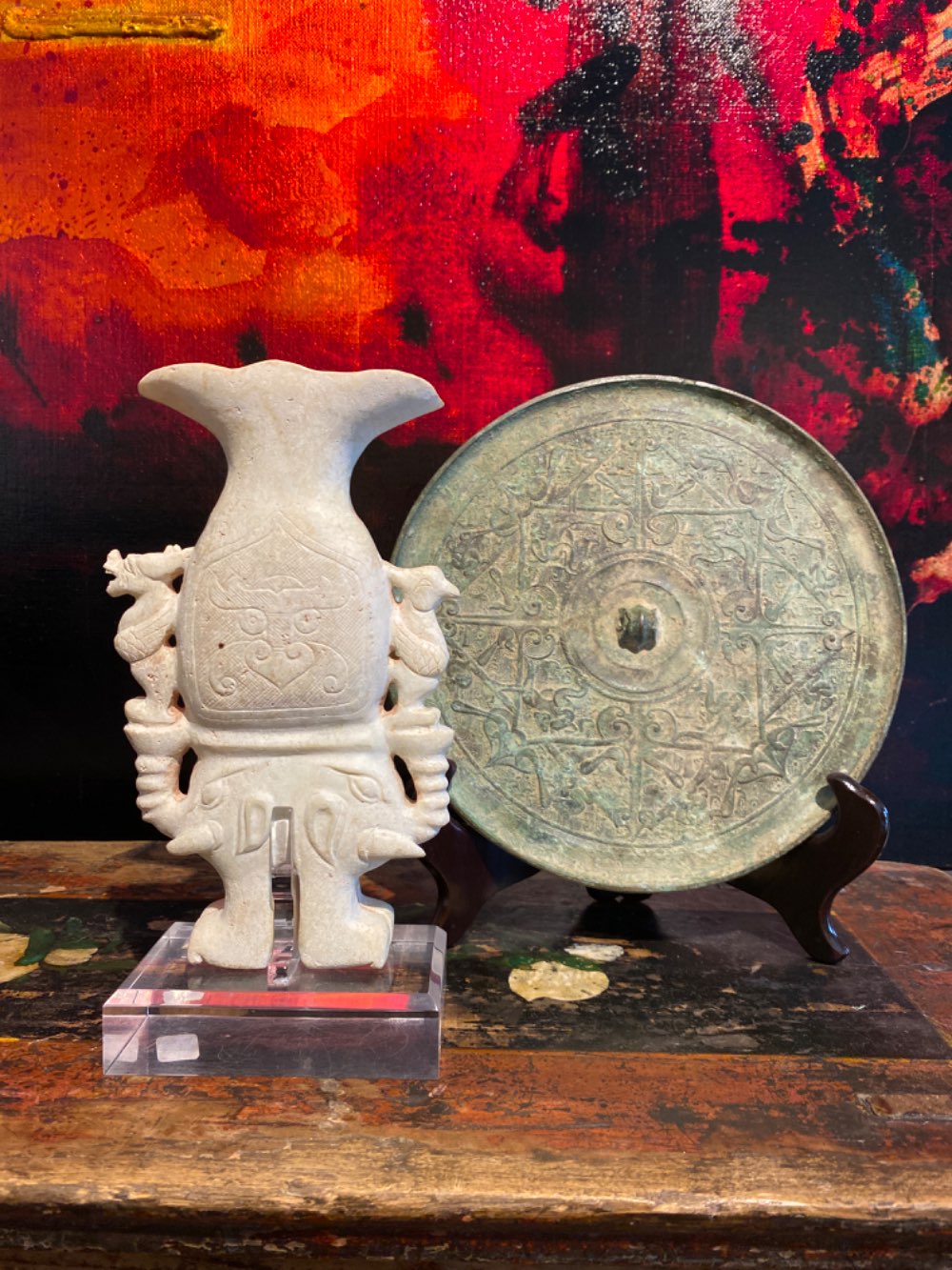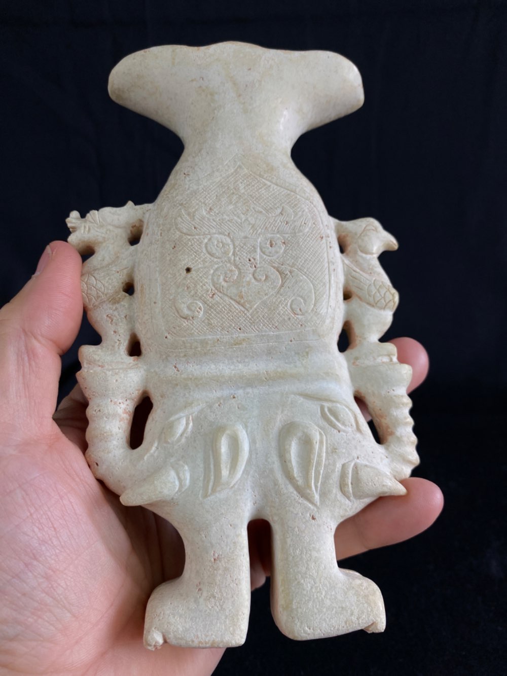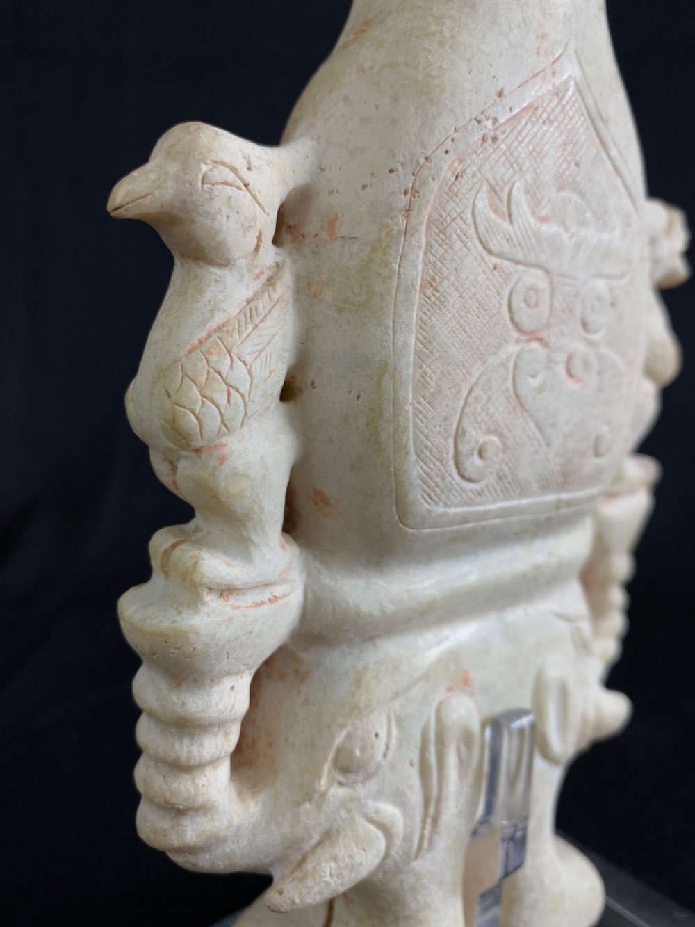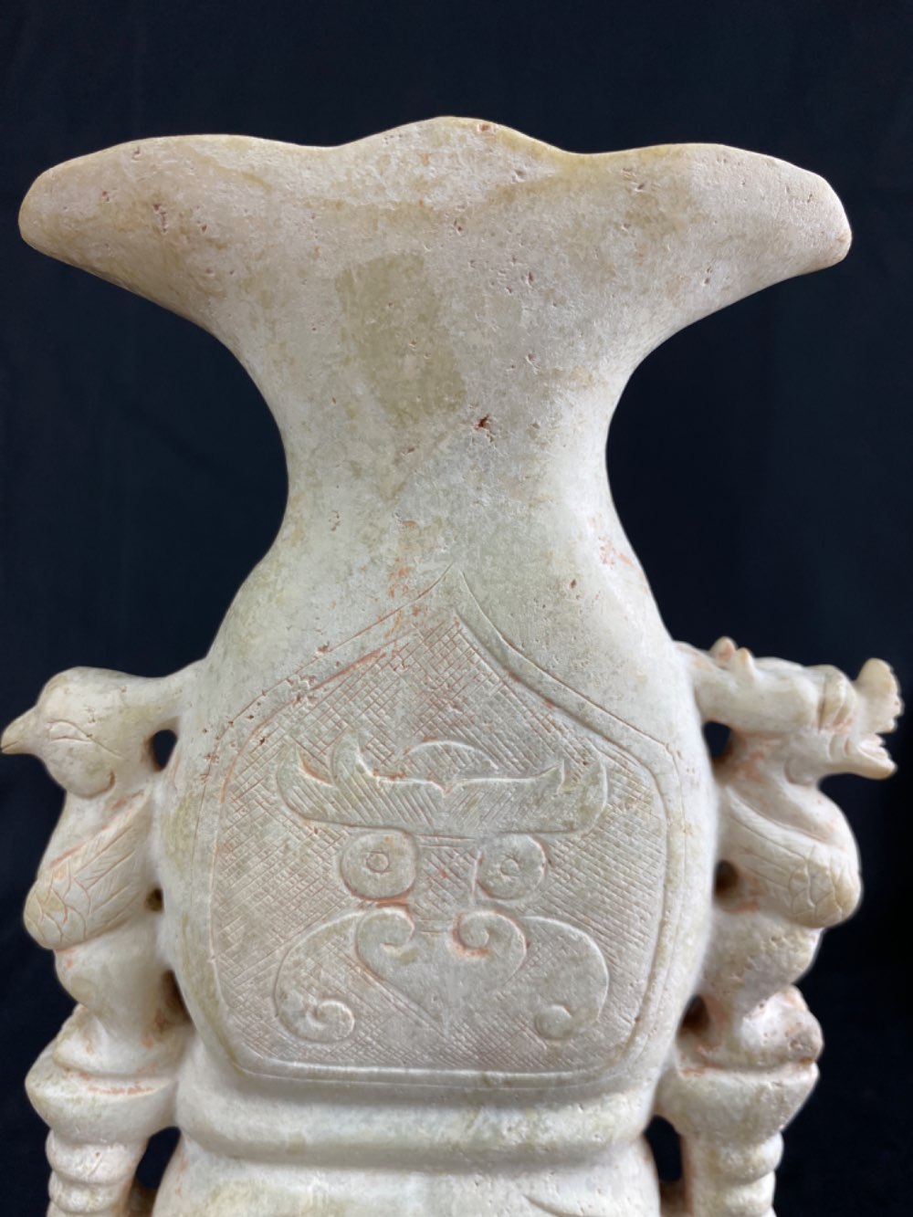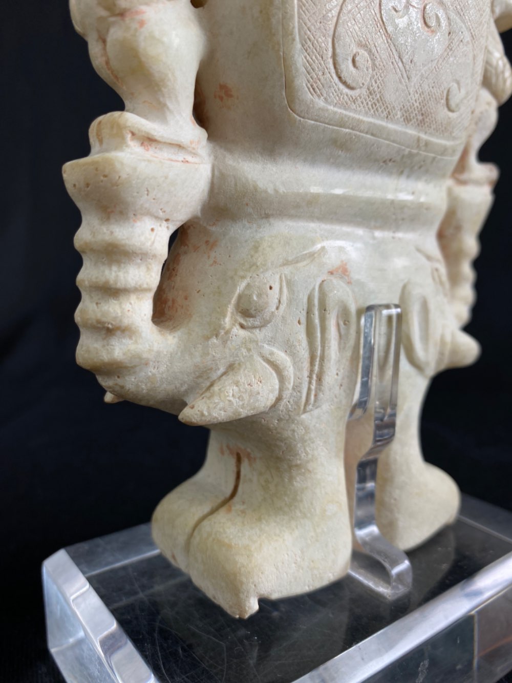 Chalice on elephant with dragon and phoenix white jade from the Tang Dynasty