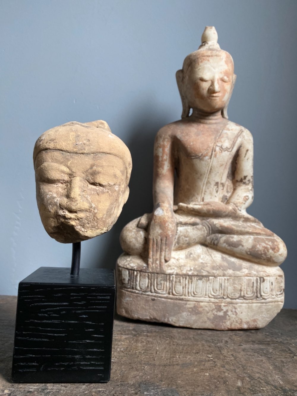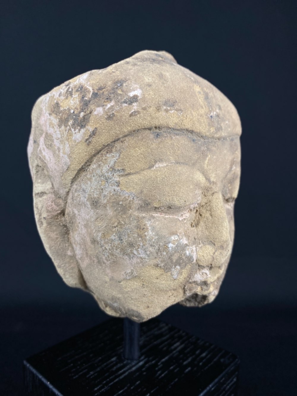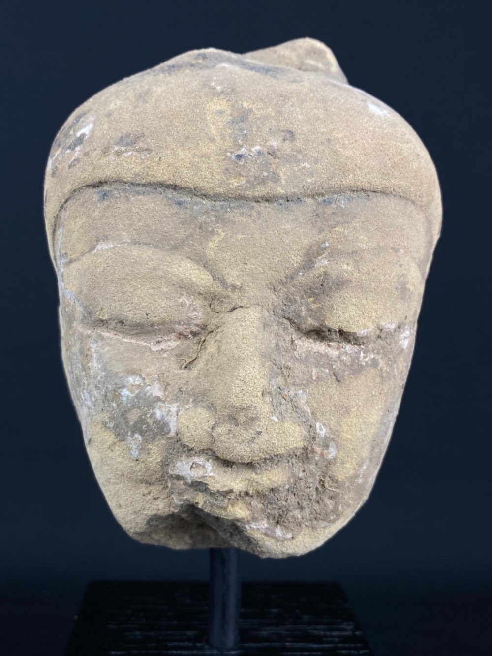 Heavely damaged Buddha head of sandstone, 17-18th century, Myanmar was added to your cart