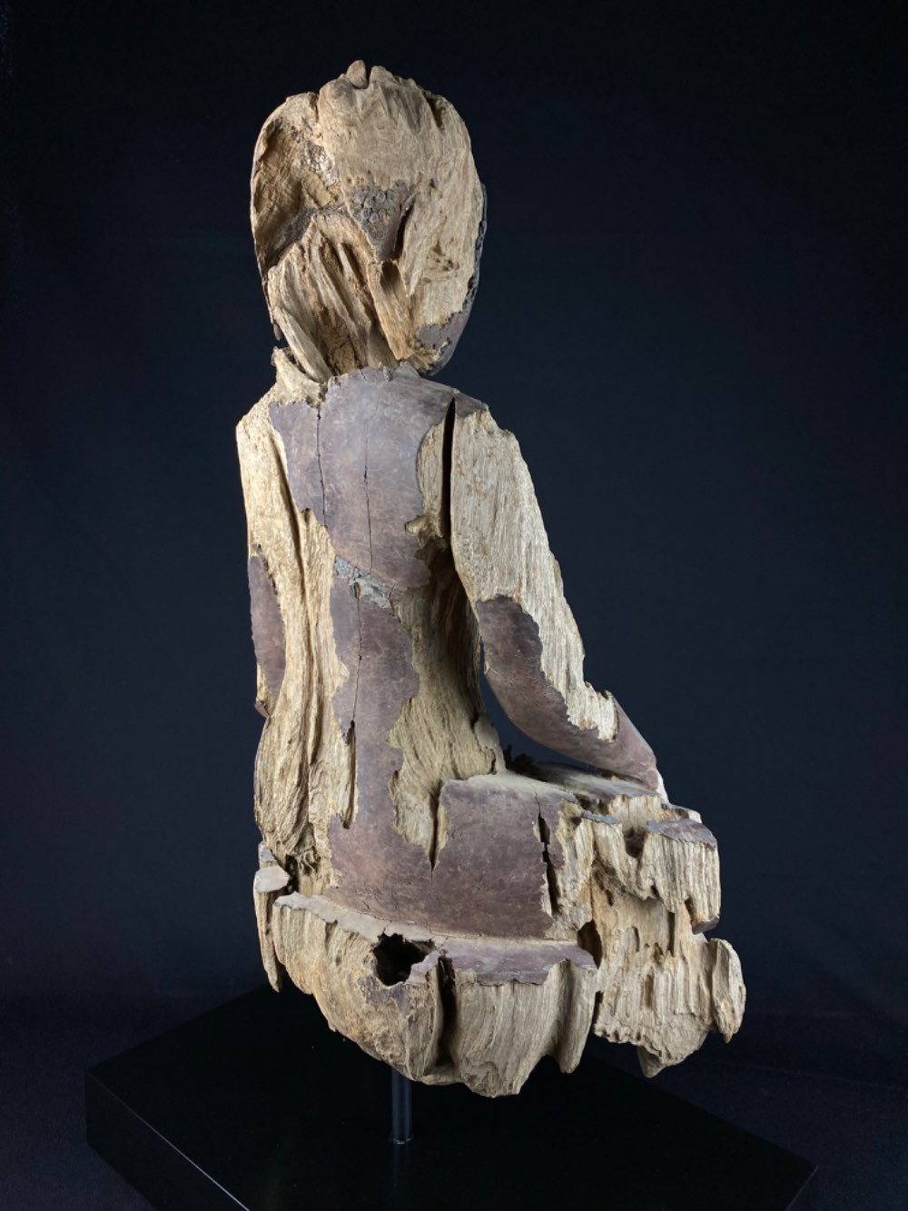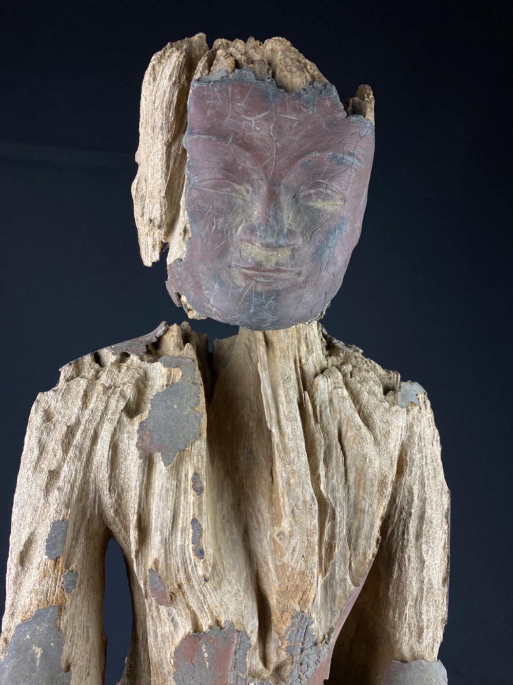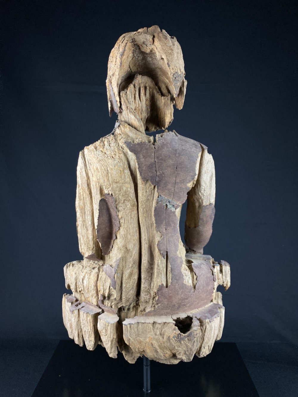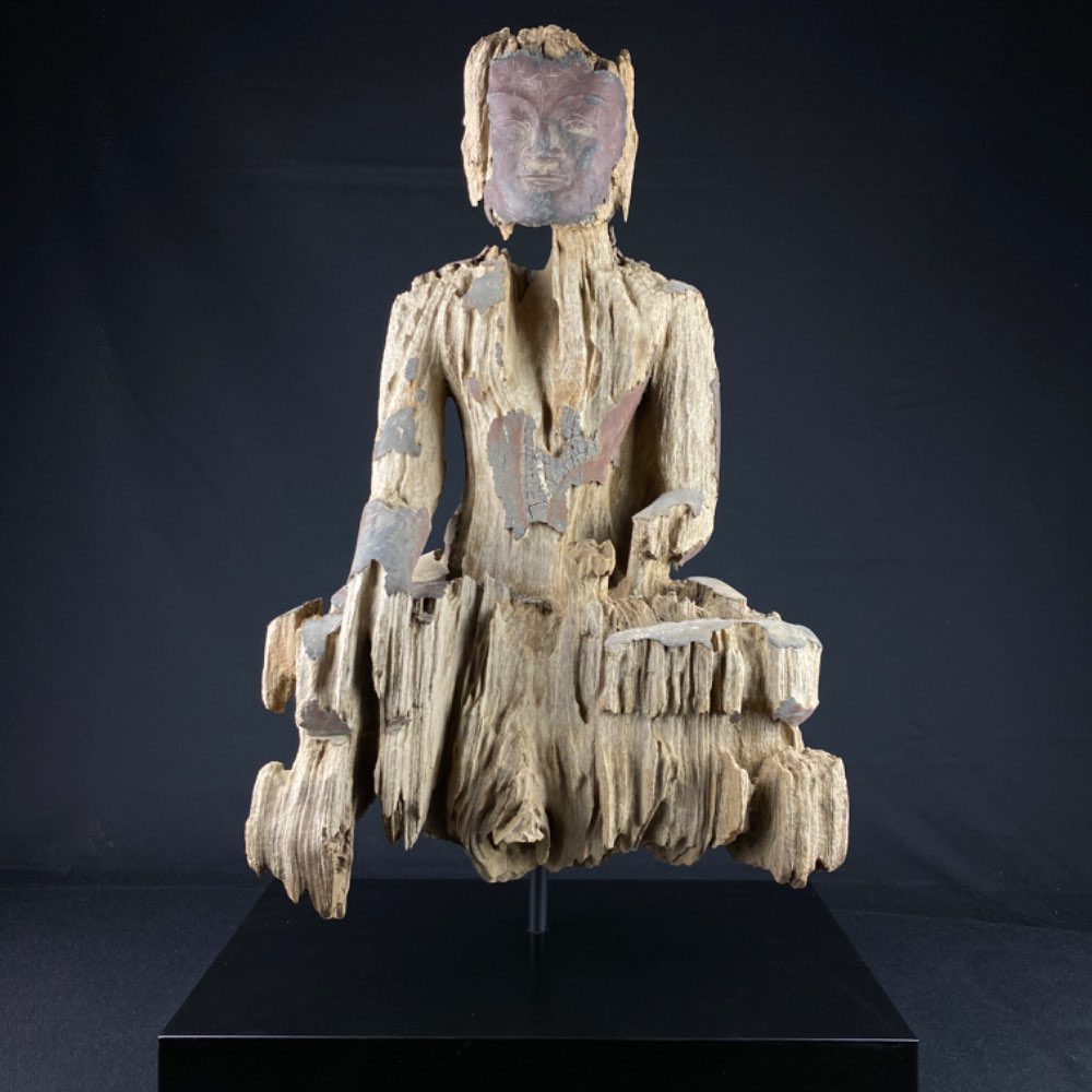 Large heavy eroded Buddha of wood with lacquer 17-18th century, Myanmar Ava