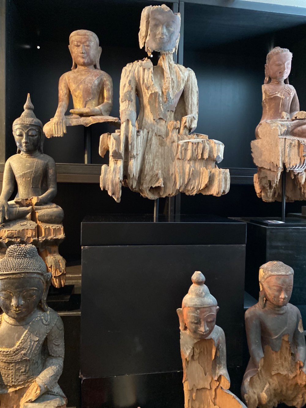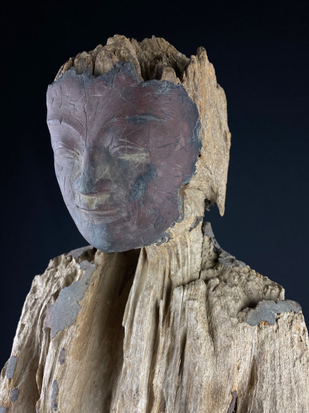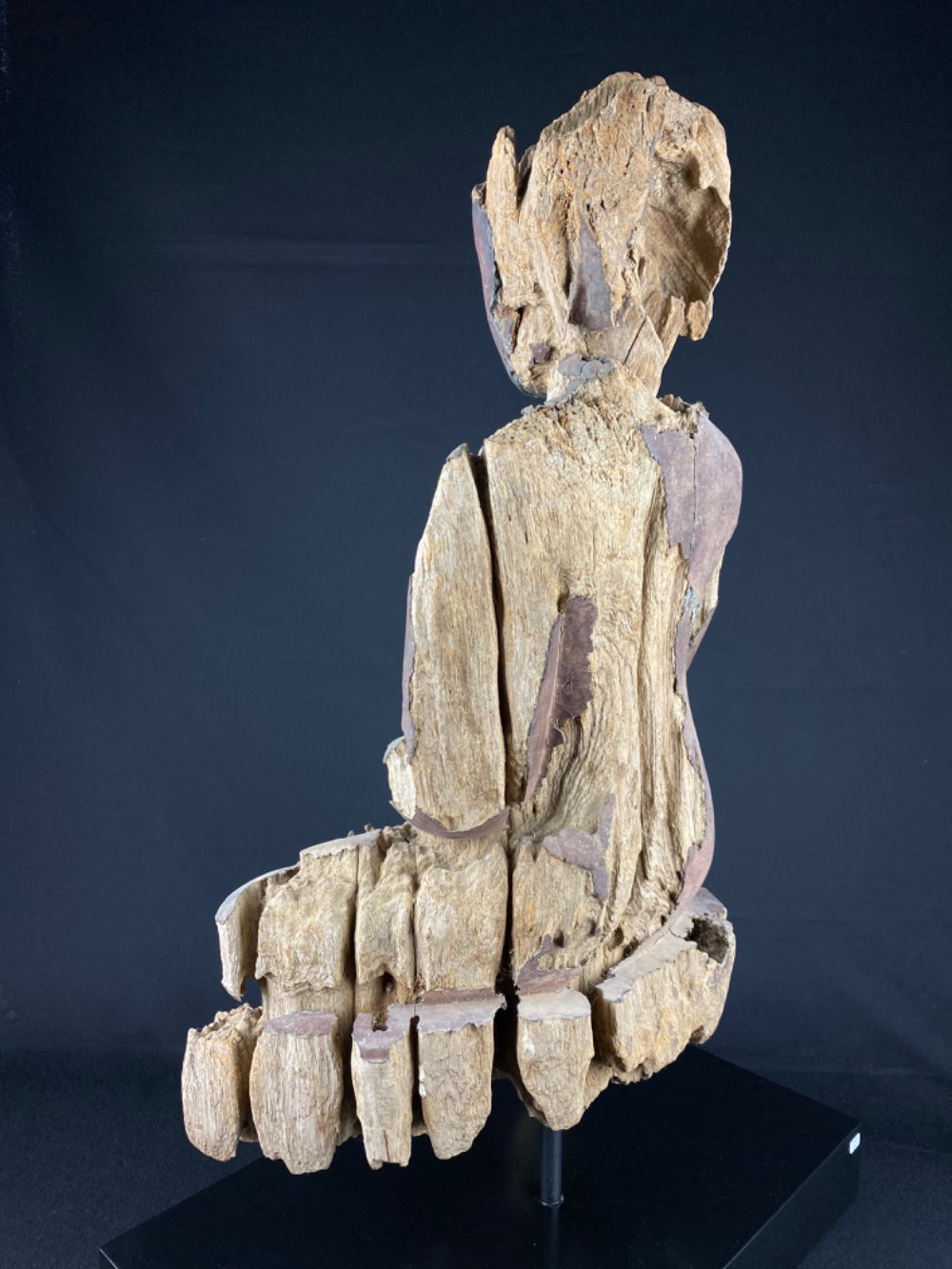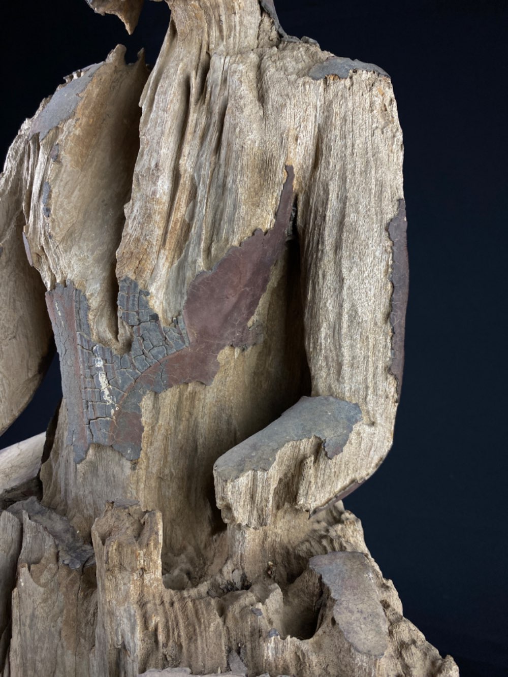 Large heavy eroded Buddha of wood with lacquer 17-18th century, Myanmar Ava