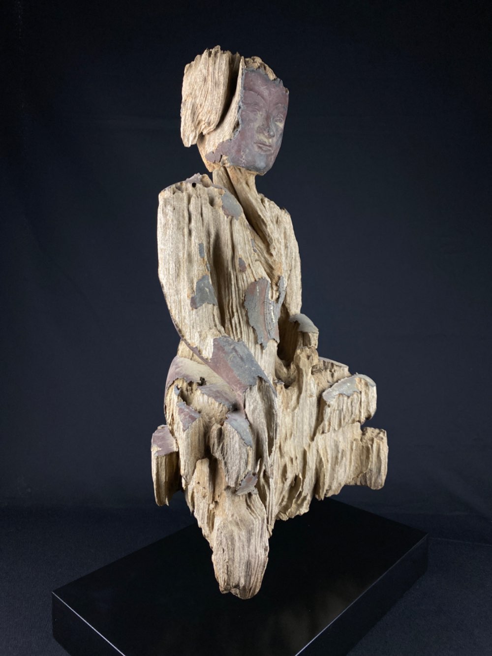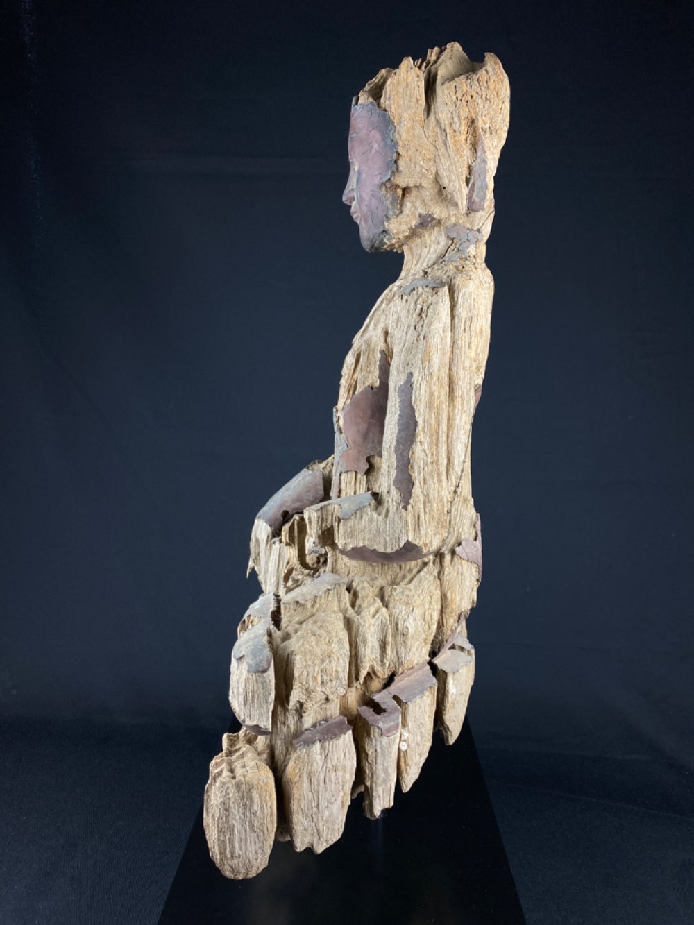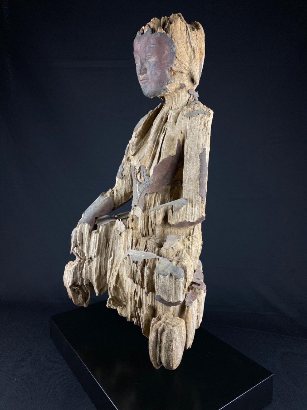 • The lacquer of the face is reconstructed in a good way but the rest of the statue is original