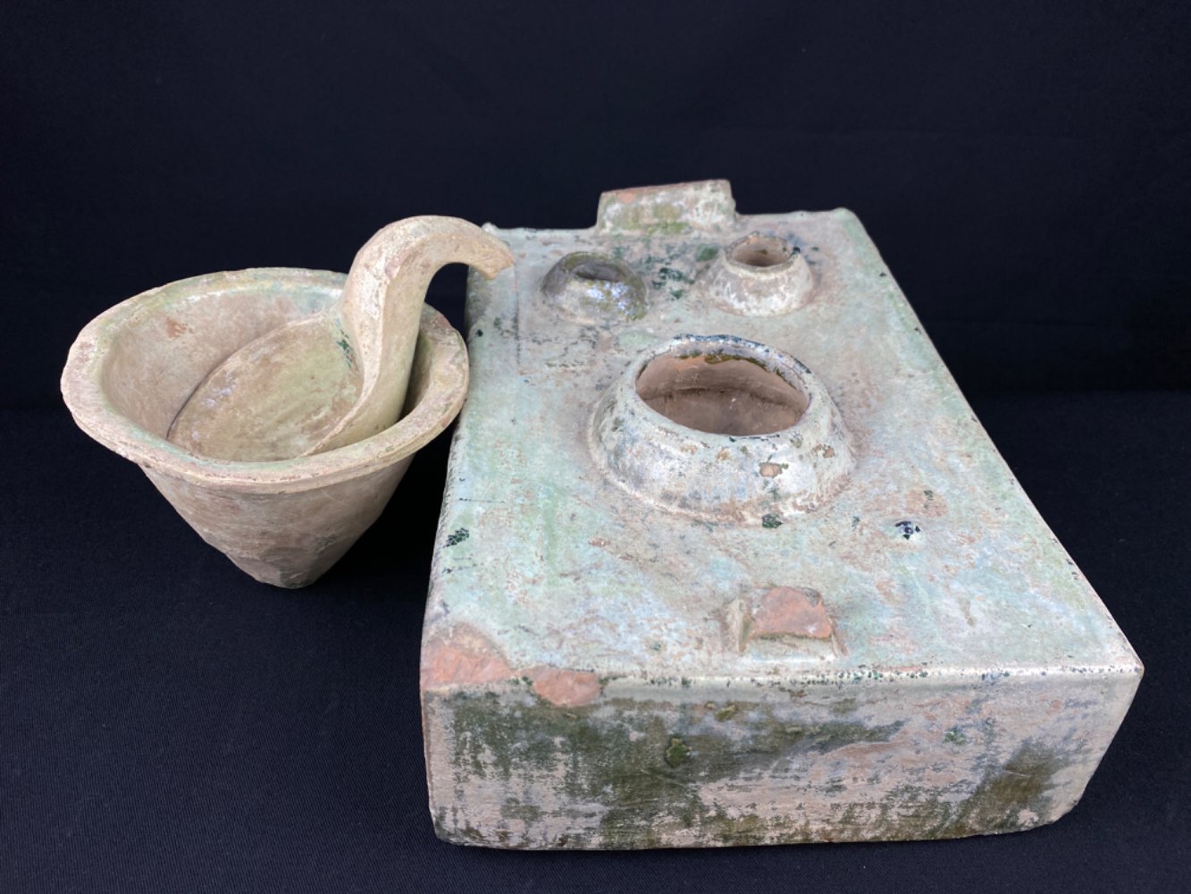 Large miniature glazed stove with bowl and spoon from the han dynasty was added to your cart