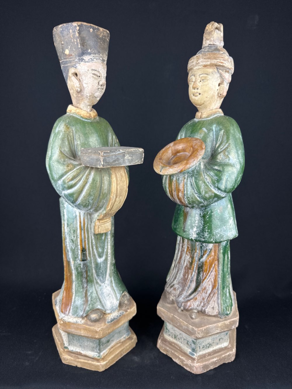 These pottery figures are a fine representation of Ming Dynasty art, reflecting both the technical skill of Ming potters and the cultural sophistication of the period.