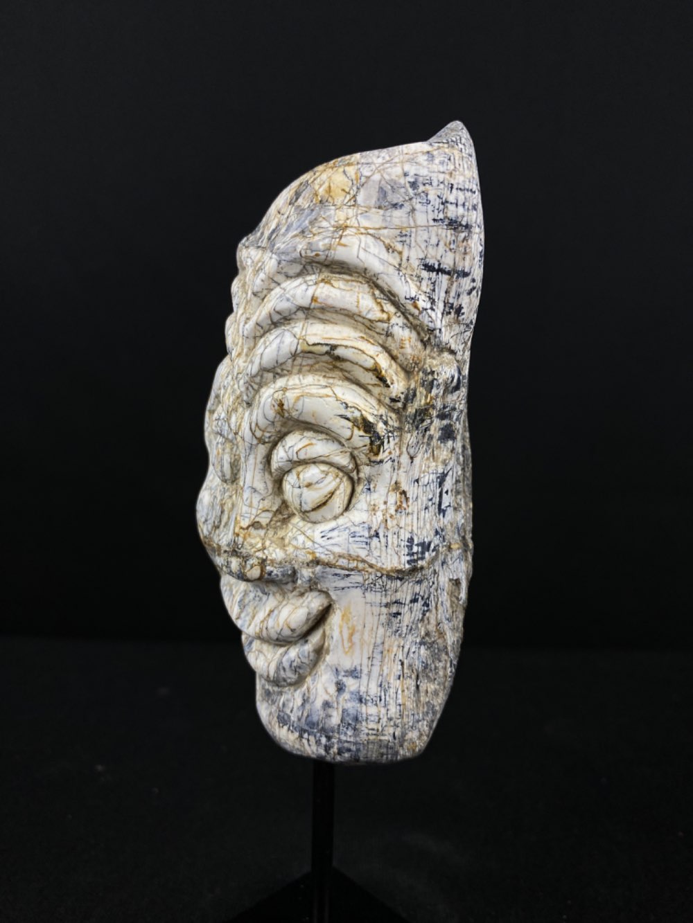 Nicely carved sculpture of a face on Genuine Fossil Mammoth ivory. Good workmanship with a resemblance to tribal.