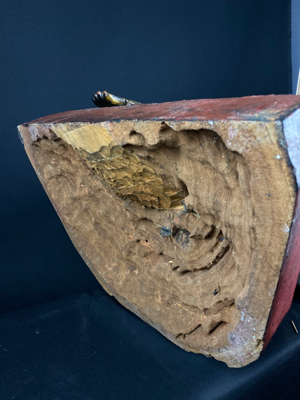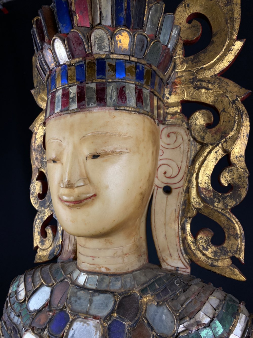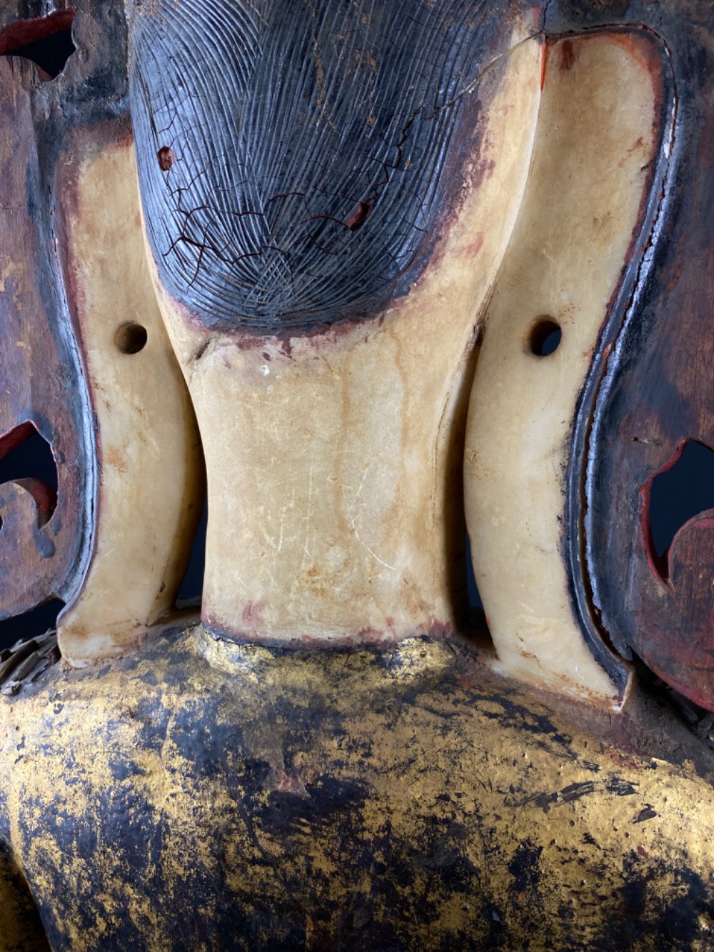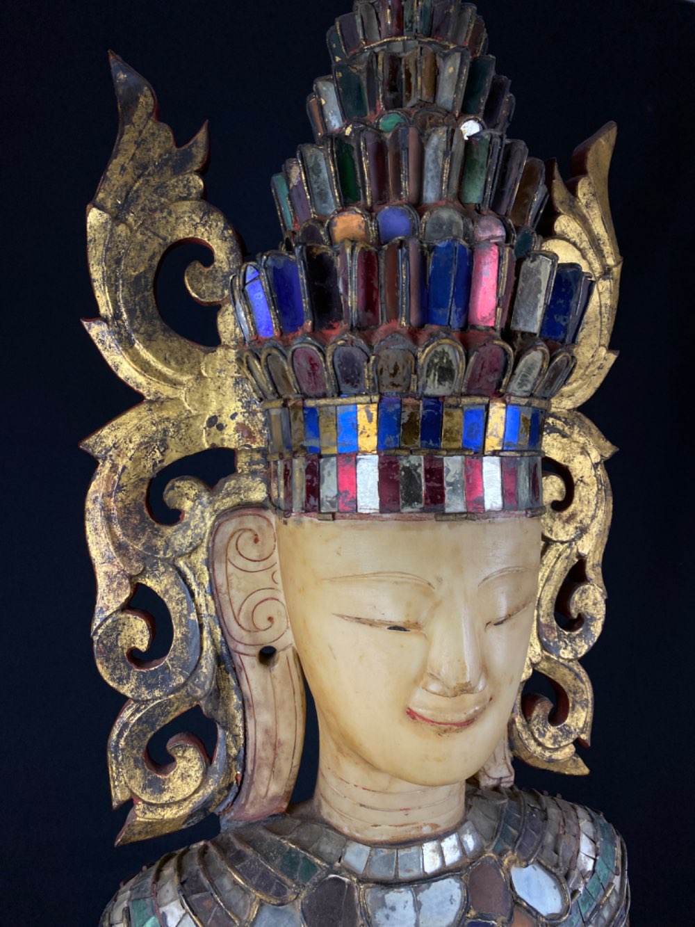 • It is very rare to see a marble head incorporated with a wooden statue, especially of this size.