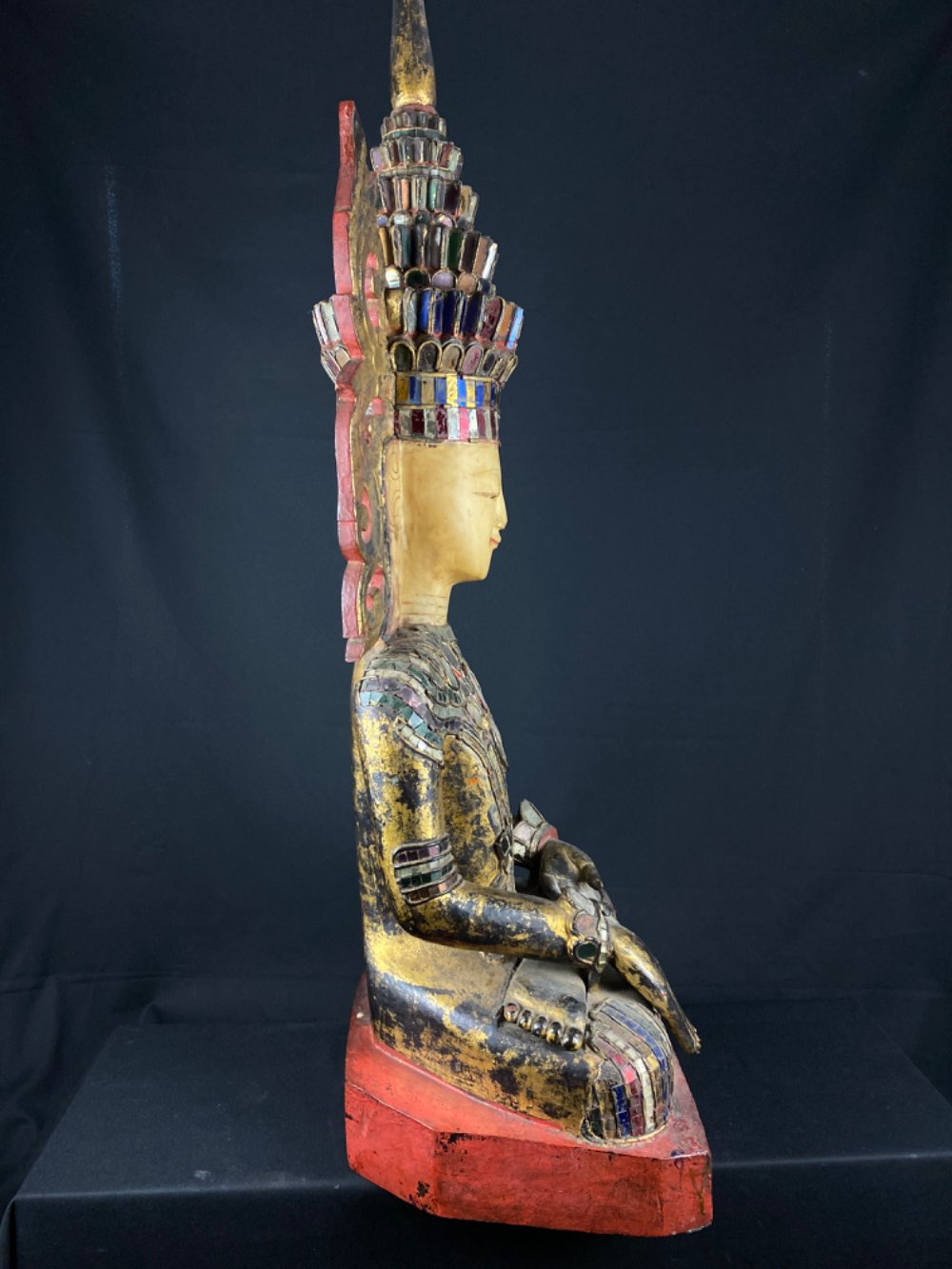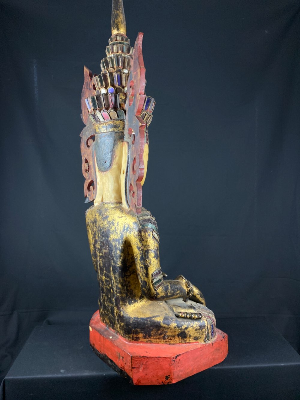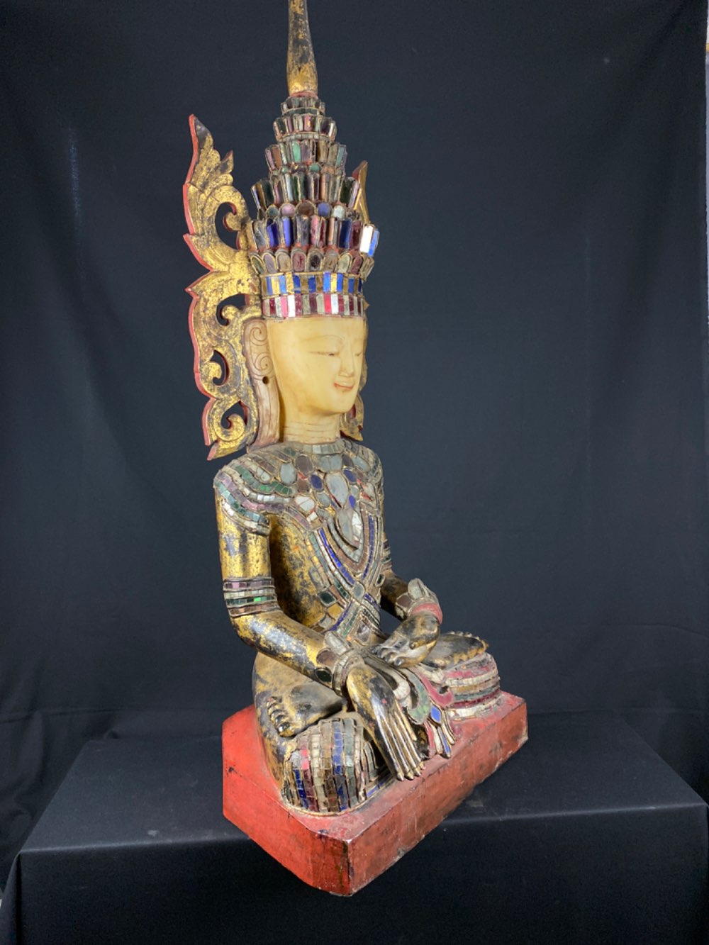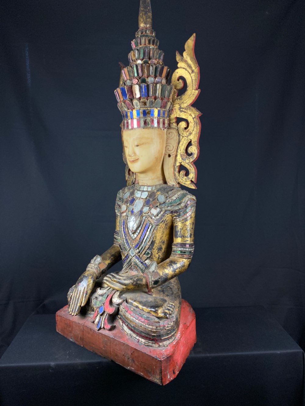 Rare Shan sitting Jambhupati Buddha of wood 19th century from Myanmar