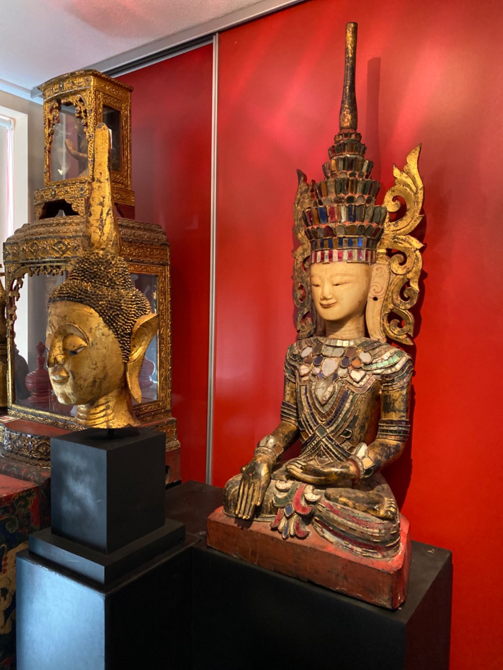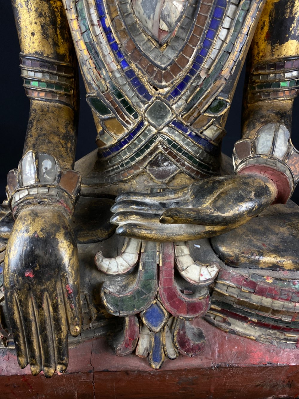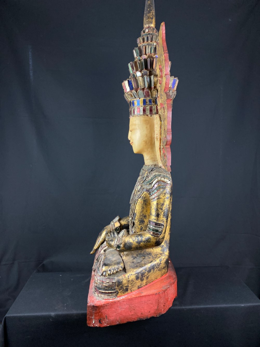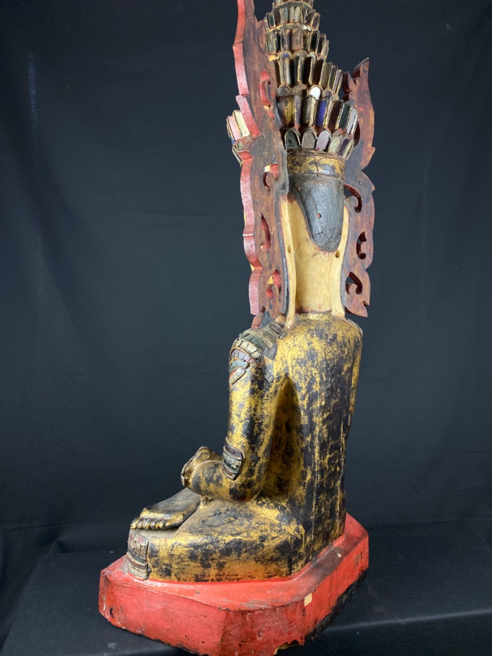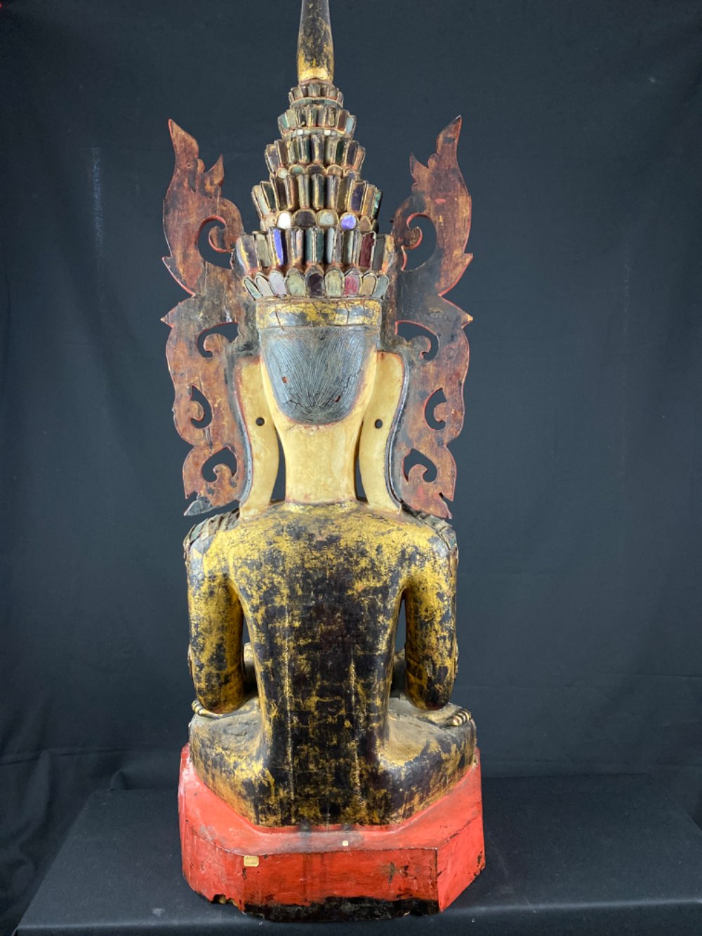 Rare Shan sitting Jambhupati Buddha of wood 19th century from Myanmar
