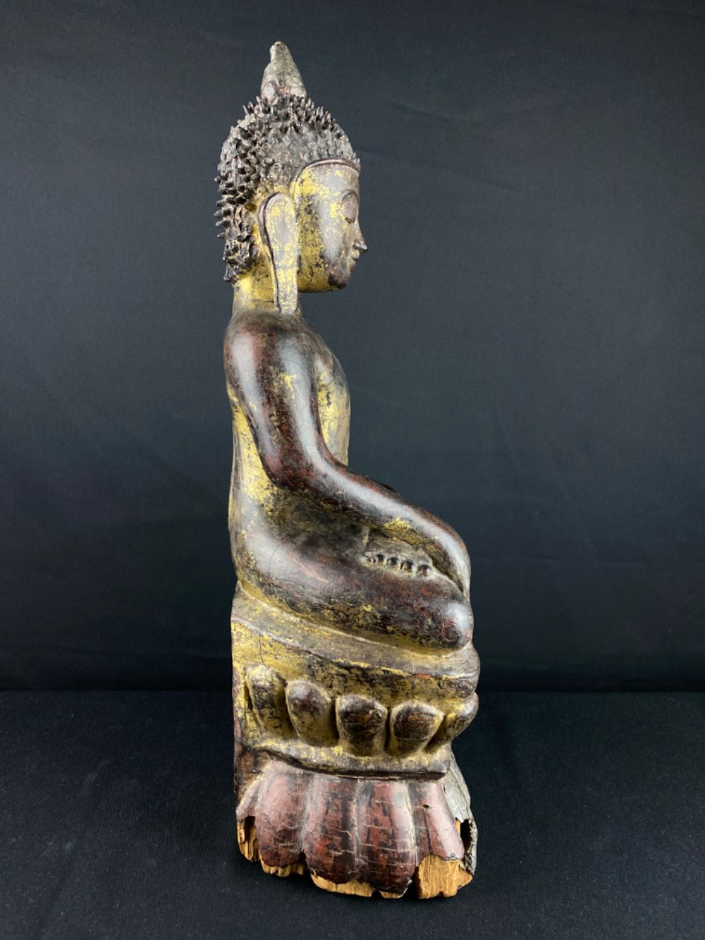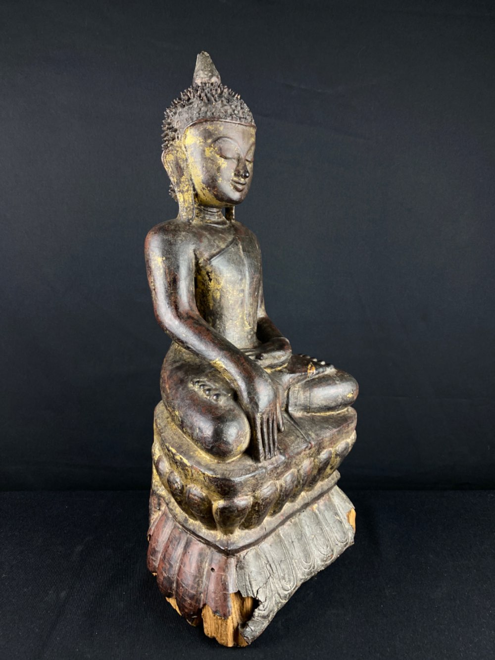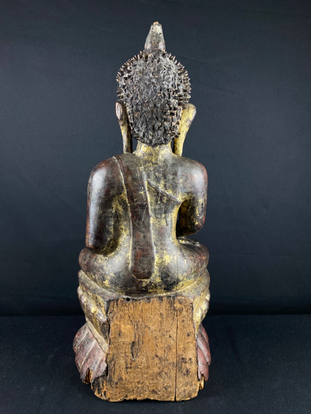 • Buddha is sitting on a lotus in the Bhumisparsha mudra.