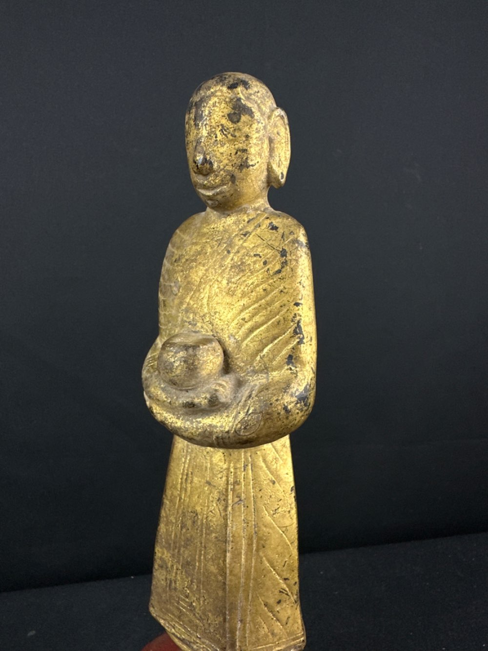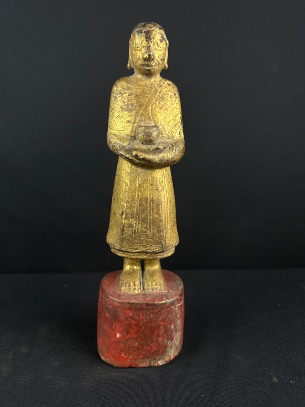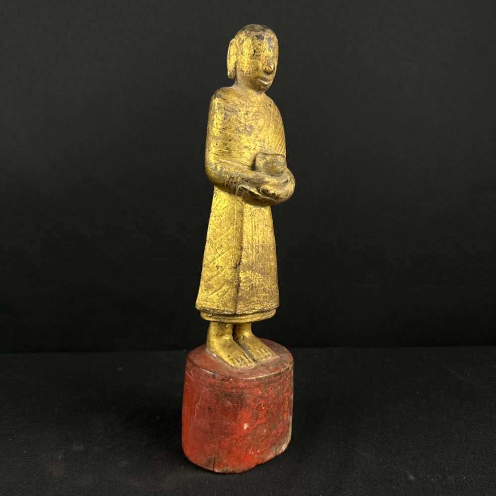 Thai monk of wood with offering bowl, 19th century was added to your cart