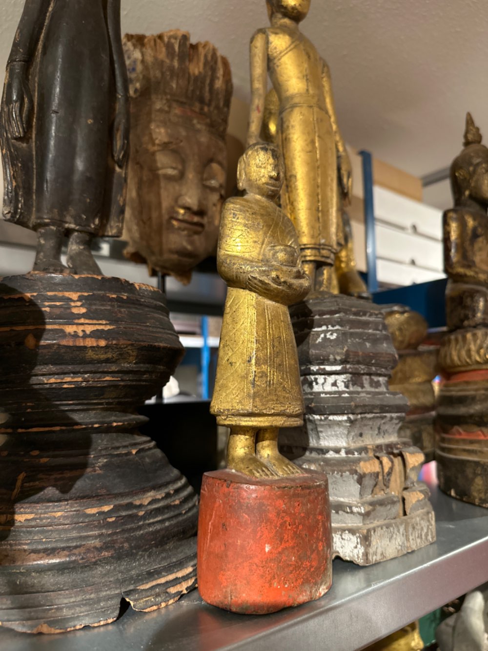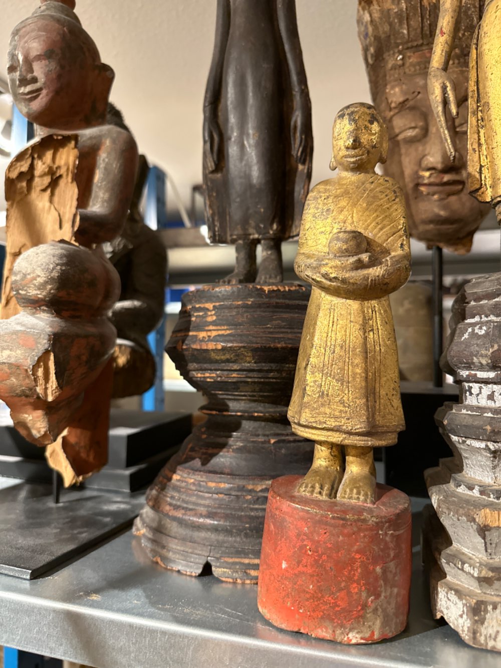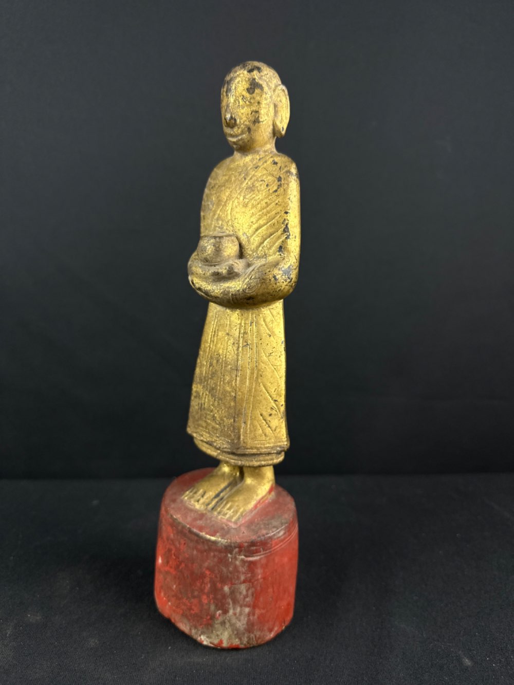 Thai monk of wood with offering bowl, 19th century was added to your cart